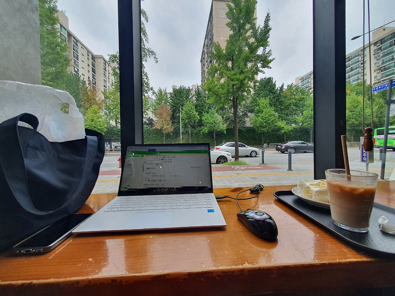 물론 종일 이러고 있었다는 건 아니다. 오전에 해야만 하는 급한 건들부터 이렇게 처리해두고(이삿짐 포장 초반엔 내가 곁에서 버릴 물건 구분도 해주는 등 할 일이 좀 있었기에 이렇게 불편하게 일한 상황) 일단 접었다. 그리고 부동산 잔금 등 볼일을 다 마쳤고, 나머지는 이삿짐센터 실장님과 남편에게 맡긴 채 이번엔 카페로 향했다.