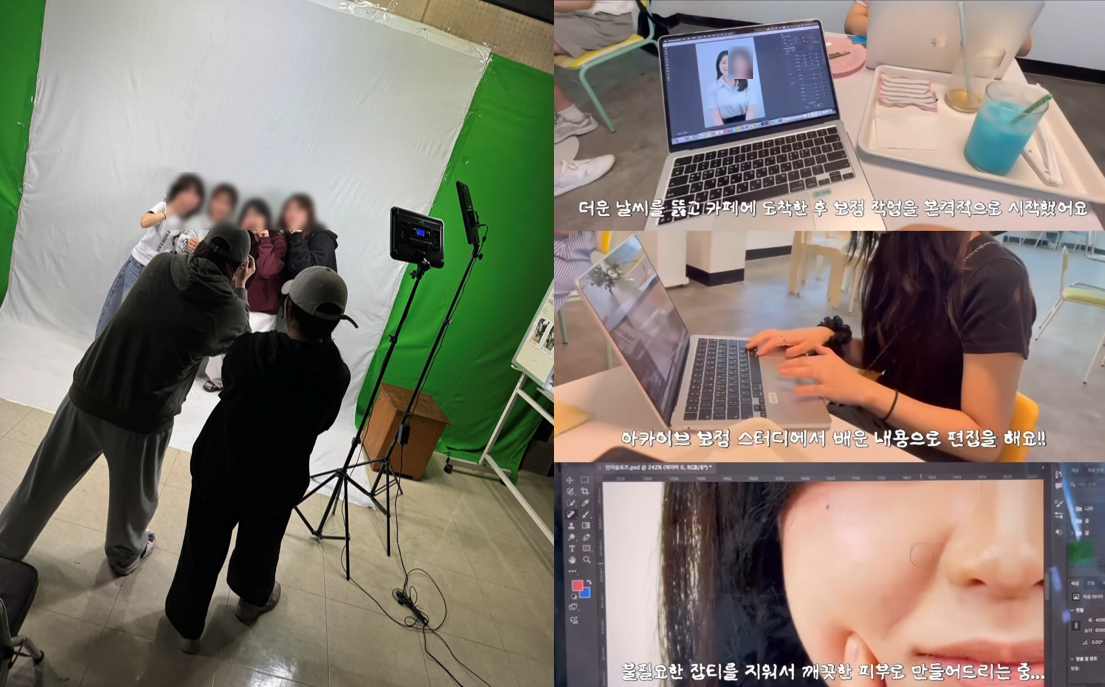 프로필 사진 보정 과정에서 포토샵 생성형 AI를 이용해 배경의 얼룩을 제거하고, 색감의 밝기와 선명도를 조절하는 작업을 통해 더 완성도 있는 프로필을 제작하였습니다.