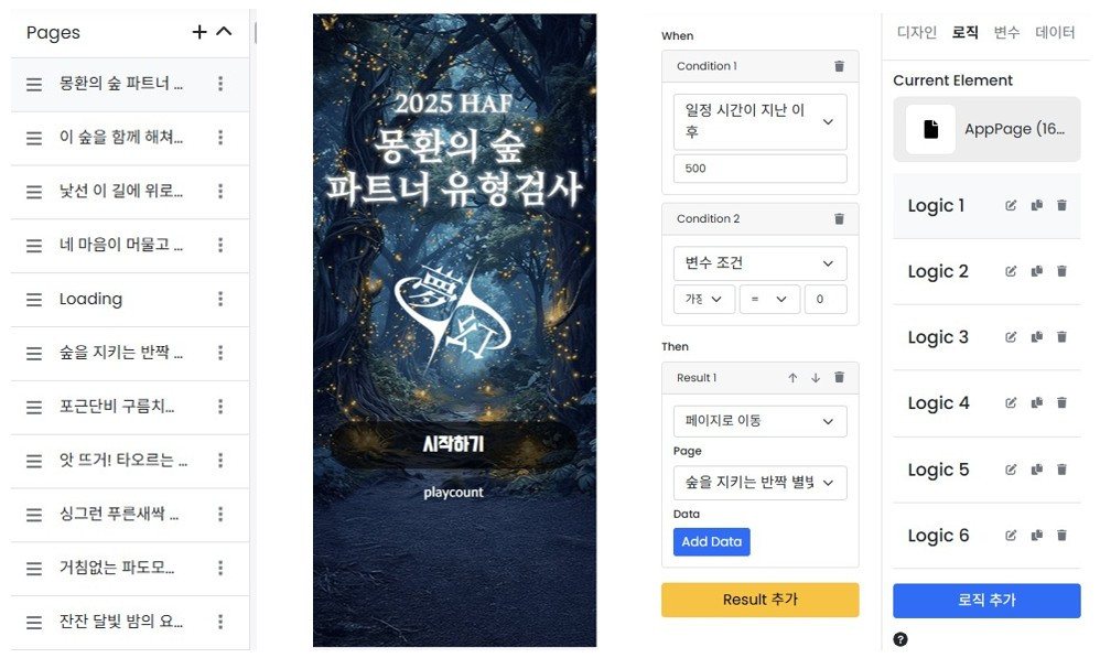 제작이 완료되면 페이지와 디자인, 로직까지 전부 자동으로 완성됩니다.