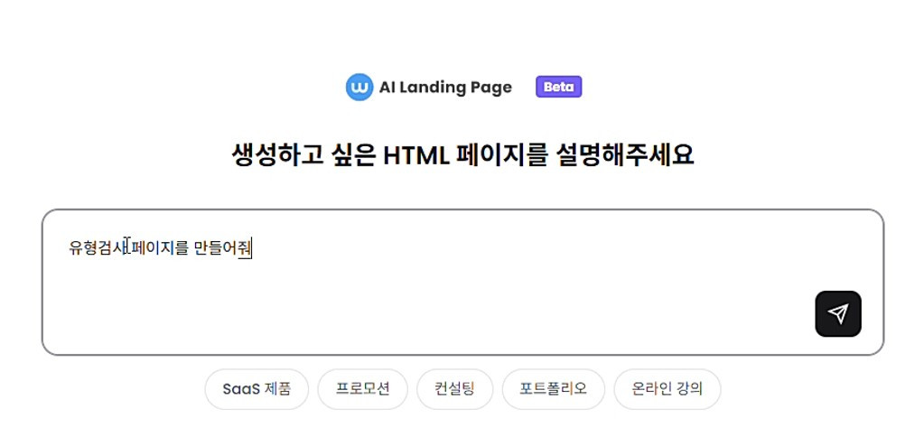 ‘프롬포트에 유형검사 페이지를 만들어줘’라고 입력하면 AI가 자동으로 제작과 코딩까지 진행합니다.
