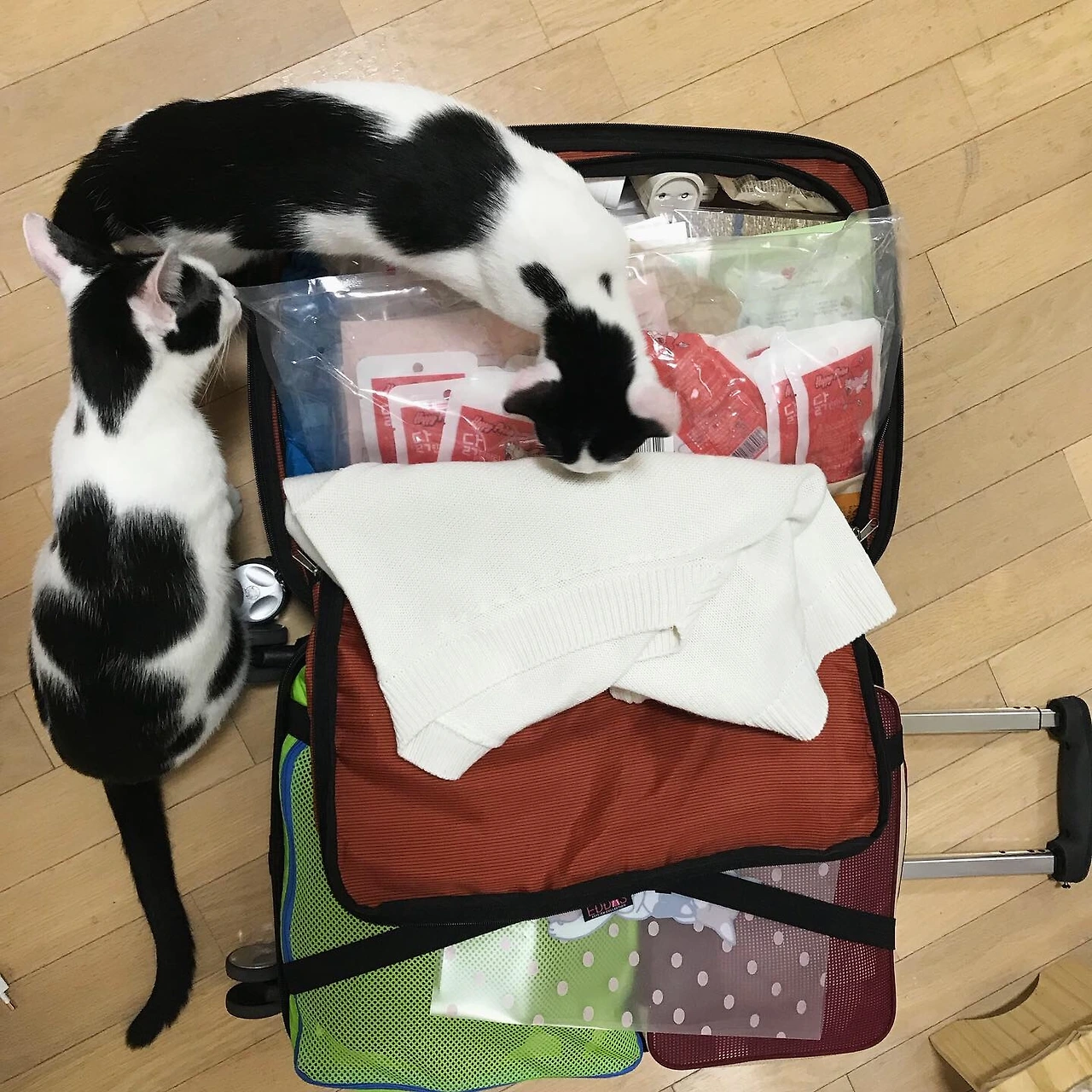 이러다 해가 뜨겠다는 생각이 들어, 결국 특단의 조치가 필요하다. 거부할 수 없는 간식으로 유혹해 방해를 막고, 빠른 손놀림으로 짐을 욱여넣는다. 예쁘게 싸는 건 이미 포기했고, 제주에 도착해 캐리어를 열었을 때 고양이만 안 들어가 있으면 다행이다.