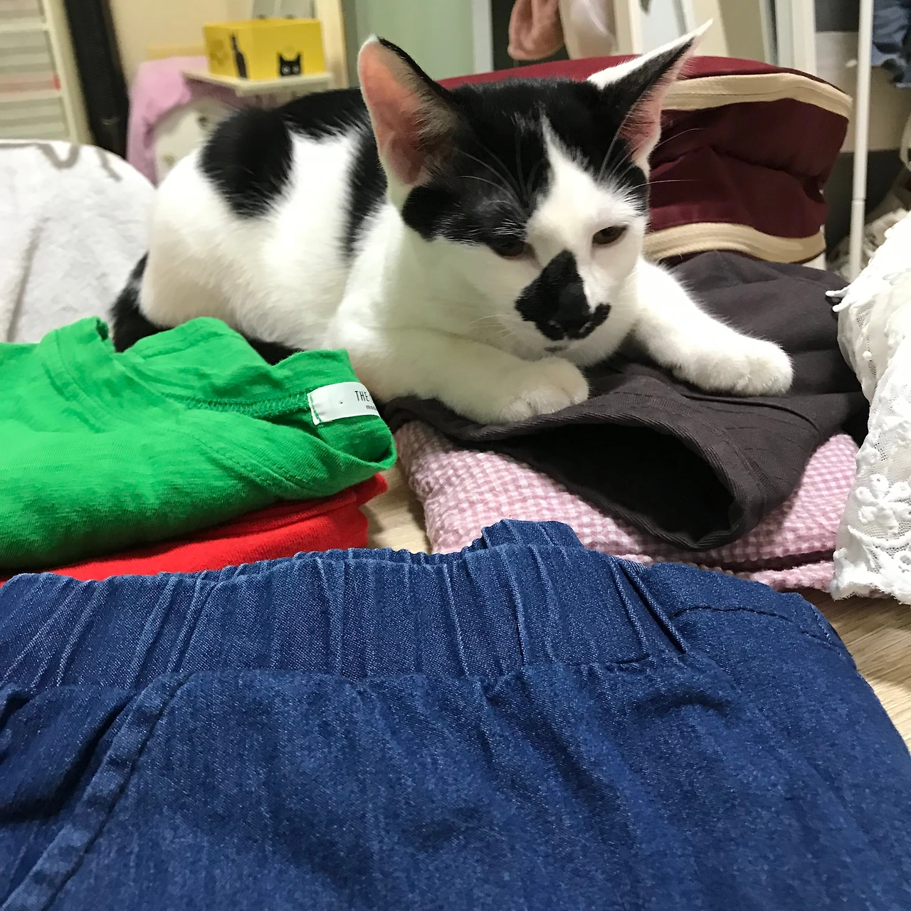 소란스럽게 짐 싸는 걸 방해하는 이 아이들은 5개월 전 구조한 유기묘 이쁜이와 그녀의 아기들이다. 이쁜이는 연남동 빌라에 살던 사람이 이사 가며 버리고 간, 8개월령 젖소 무늬 고양이다. 이쁜이는 자신이 살던 골목 주변을 떠나지 못하고, 늘 같은 자리에 앉아 식빵을 굽고 있었다. 마치 누군가를 끝내 기다리는 듯한 눈빛이었다.