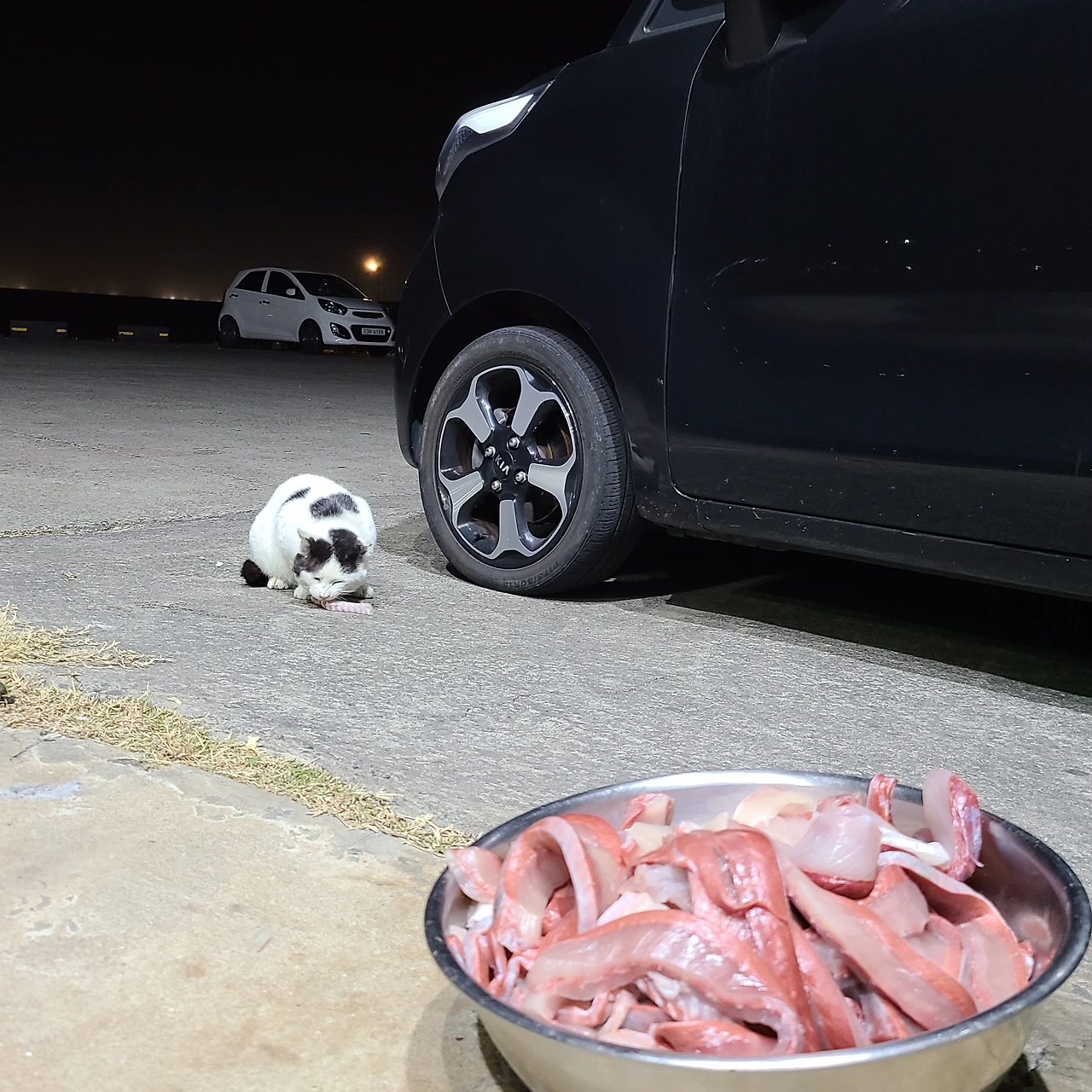 노을을 감상하려 모여들었던 자동차들이 하나둘 떠나고, 고요해진 바닷가에 고양이들의 야옹 소리가 꾀꼬리처럼 울려 퍼진다. 잠시 후, 인심 좋은 횟집 직원이 큼직하게 썰어낸 회를 대형 양푼에 산처럼 수북이 담아 들고 나온다.