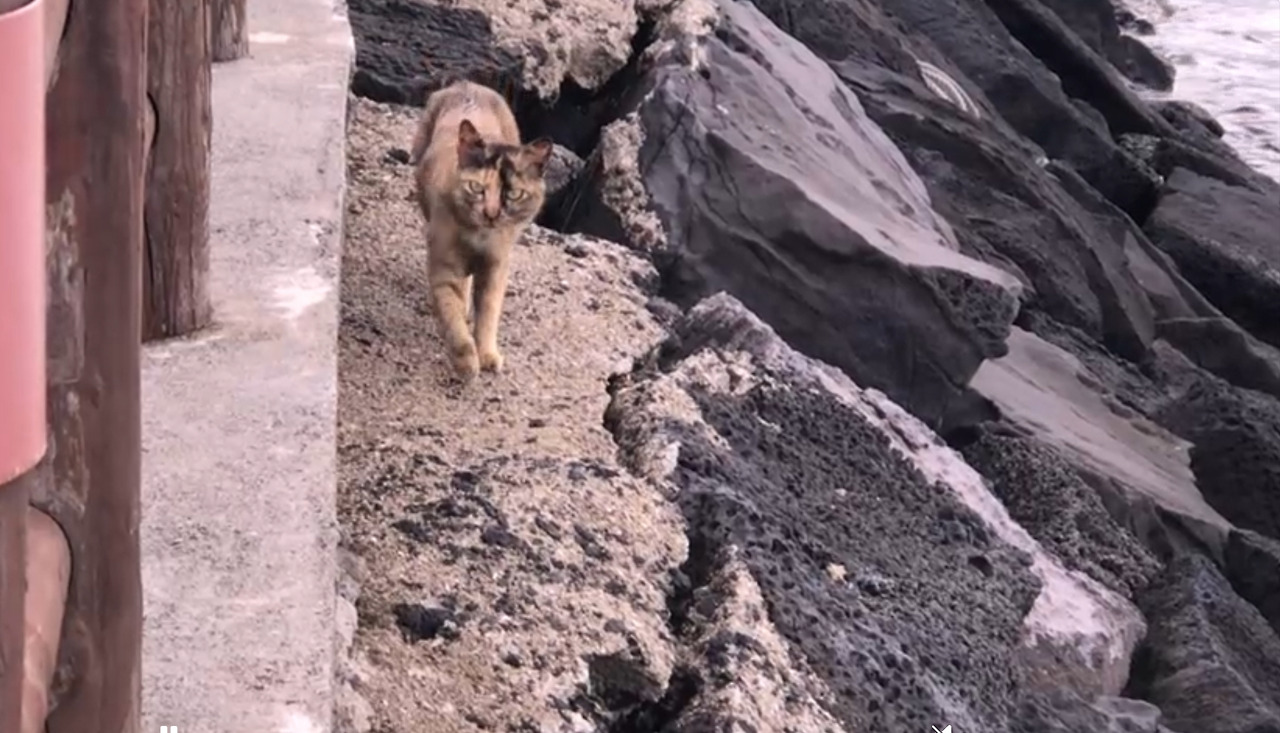이곳은 등대 아래에서 새끼 둘을 키우는 삼색 어미 고양이 가족이 머무는 곳에서 불과 열 걸음 거리였다. 그 어미 고양이는 아이들을 바위틈에 숨겨두고 곁에서 살뜰히 육묘 중이었고, 덕분에 그곳의 아기 고양이들은 비교적 건강해 보였다. 두 어미 고양이가 나란히 바위 아래서 새끼를 키우고 있다는 사실은 놀랍고도 경이로운 일이었다.