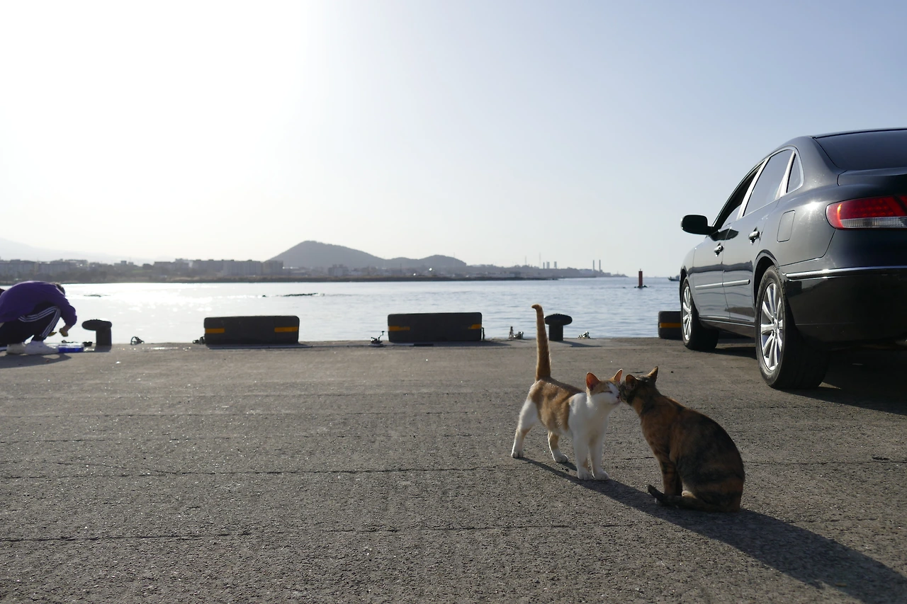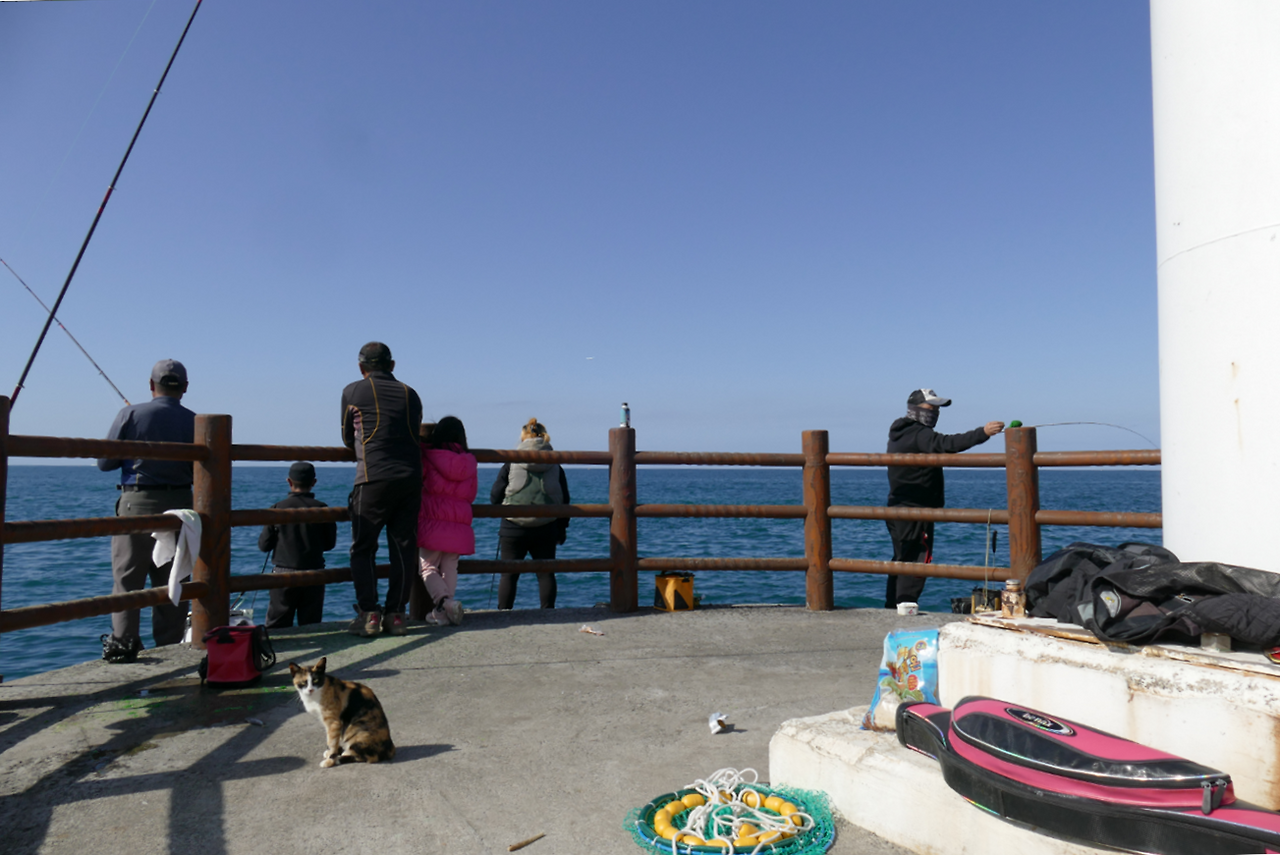 등대 앞으로 가자, 낚시꾼들 너머 삼색 어미 고양이가 자리를 잡고 있었다. “야옹야옹—” 낚시꾼에게 말을 거는 듯한 그 모습은 당당해 보였지만, 이 순간조차 생존을 위한 간절함이라는 걸 나는 알고 있었다.