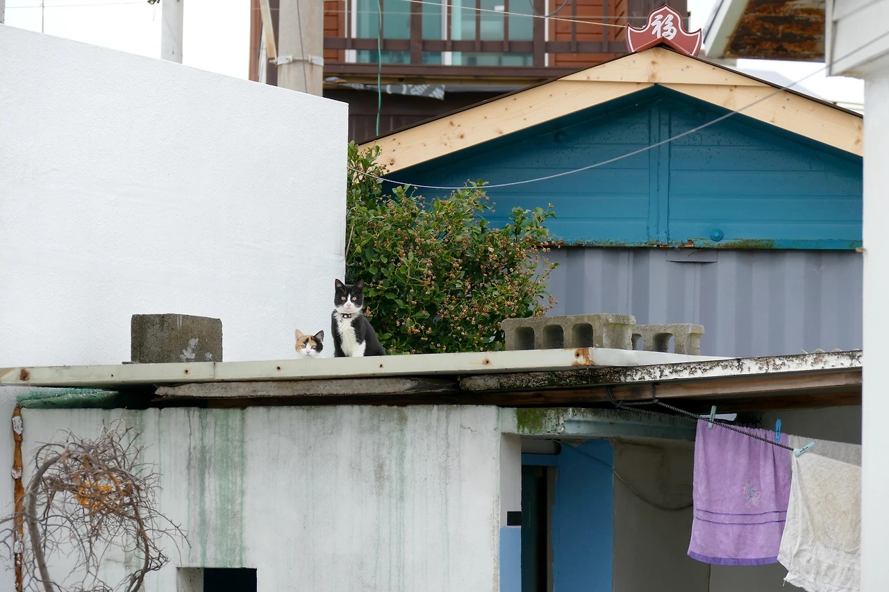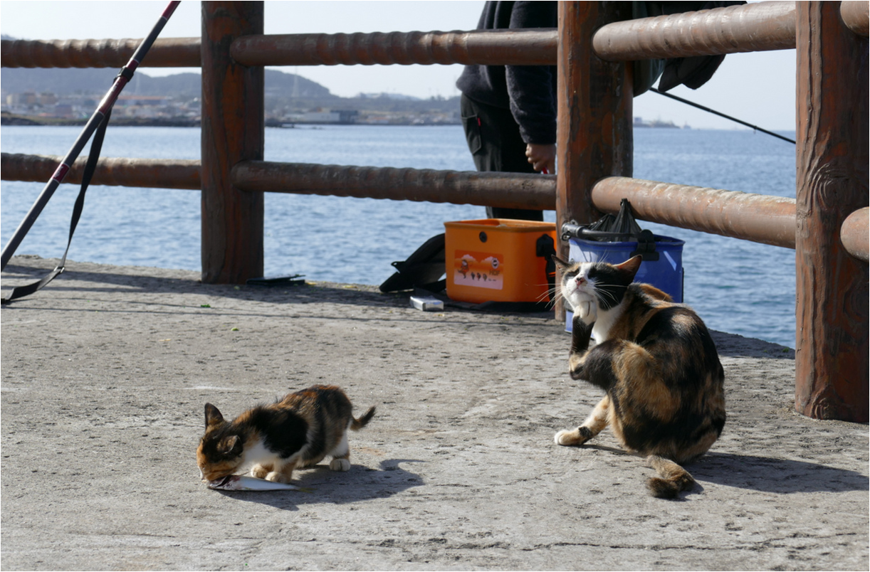 카메라에 포착된 치즈 아기 고양이를 다시 보기 위해 방파제를 살폈지만, 흔적은 없었다. 마치 꿈처럼. 아쉬운 마음을 안고 숙소로 향했다. 점심 겸 이른 저녁을 먹고 외투를 챙겨 다시 방파제로 향했다. 오후 5시, 사람들의 발길이 잦아들며 고양이들의 시간이 시작된다.