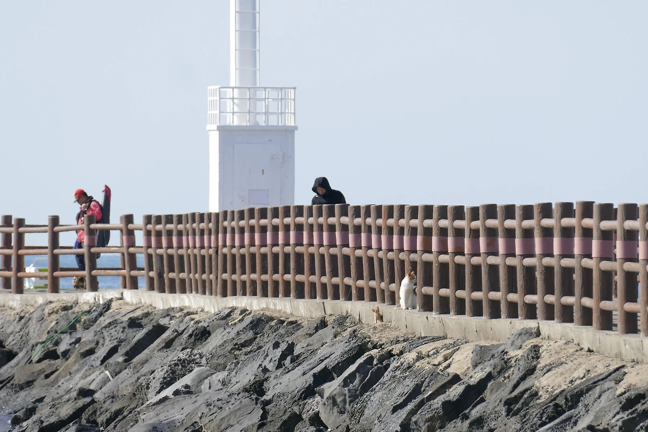 수색을 시작한 지 벌써 4일째. 거칠게 몰아치던 풍랑은 잦아들었고, 차가운 바람 속에도 봄기운처럼 따스한 기운이 감돌았다. 방파제 등대 쪽에는 이미 낚시꾼이 자리를 잡고 있었고, 그쪽으로 향하는 고양이의 뒷모습이 보였다. 낯익은 걸음걸이, 아마 등대 아래에서 새끼를 키우는 삼색 어미일 것이다. 나는 그녀를 나중에 만나기로 하고, 방파제 주변과 마을을 먼저 둘러보기로 했다.