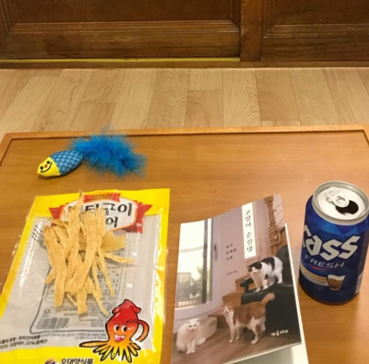 첫날밤의 저녁 메뉴는 황태포, 맥주, 그리고 고양이 책 한 권. 고양이 구조로 엉켜버린 마음을 달래려 펼쳐든 책은 민박 주인장이 건네준 것이었다. 고양이들과 함께한 하루하루가 담긴 이야기들은 잔잔하게 스며들며, 묵직한 하루의 감정을 천천히 가라앉혀주었다. 낯선 방, 익숙한 긴장, 그리고 아직 만나지 못한 고양이. 모든 것이 어색하고 설레는 밤이었다.