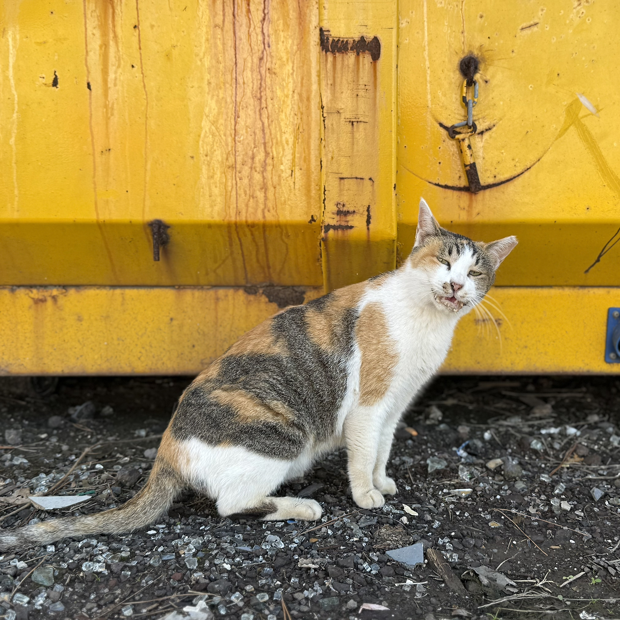 소품점이 사라진 뒤부터 이어진 인근 캣맘의 돌봄은 이곳까지 닿아 있었다. 그는 매일같이 공터를 찾아와 사료와 물을 챙기며 아이들의 삶을 지켜주었다. 회색 컨테이너 앞, 삭막한 공터에서 삼색이와 친구들은 그 손길을 기다리며 하루를 이어갔다. 차갑고 황량한 풍경이지만, 그 작은 정성 덕분에 아이들의 삶은 여전히 따뜻하게 지켜지고 있었다.