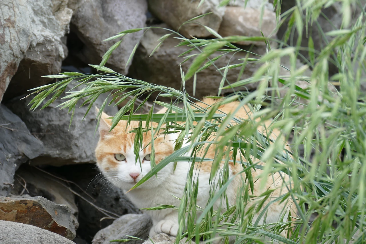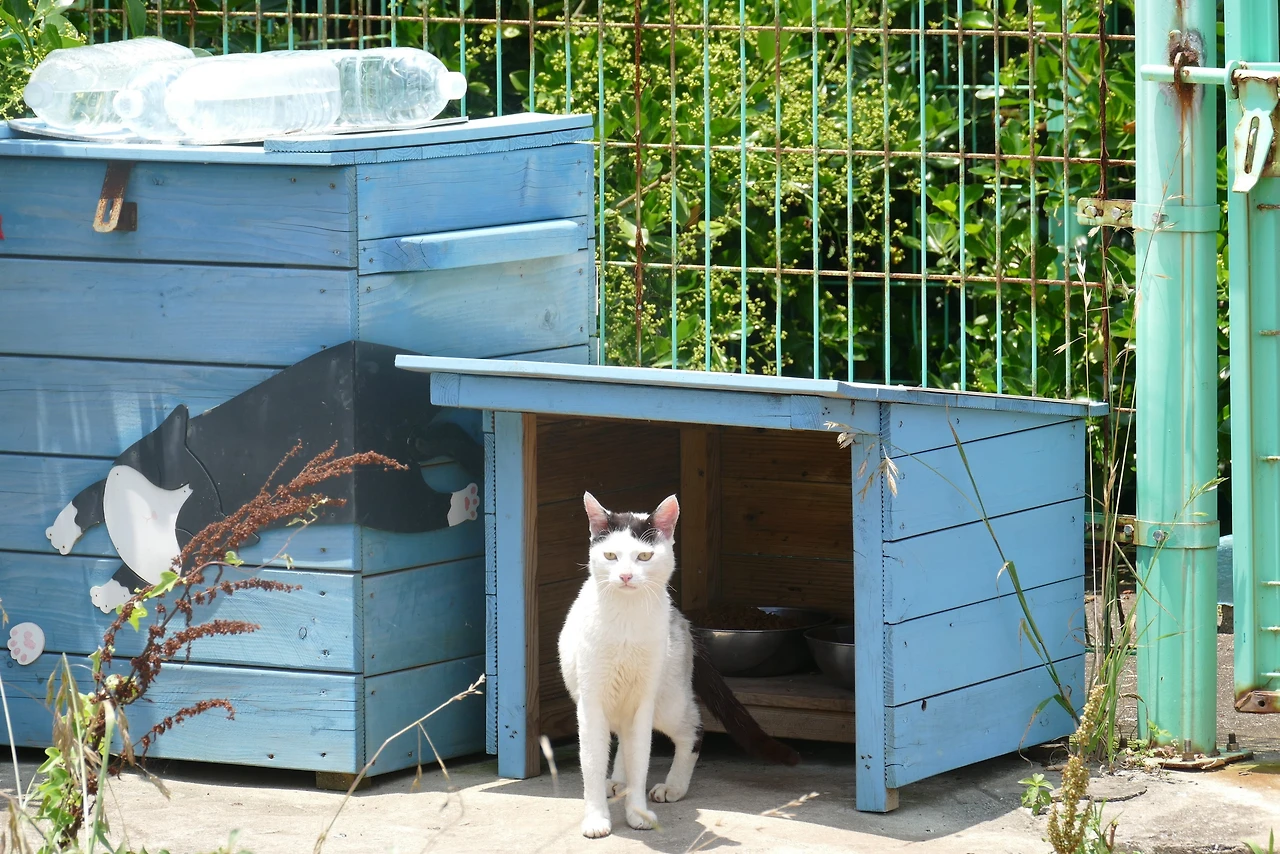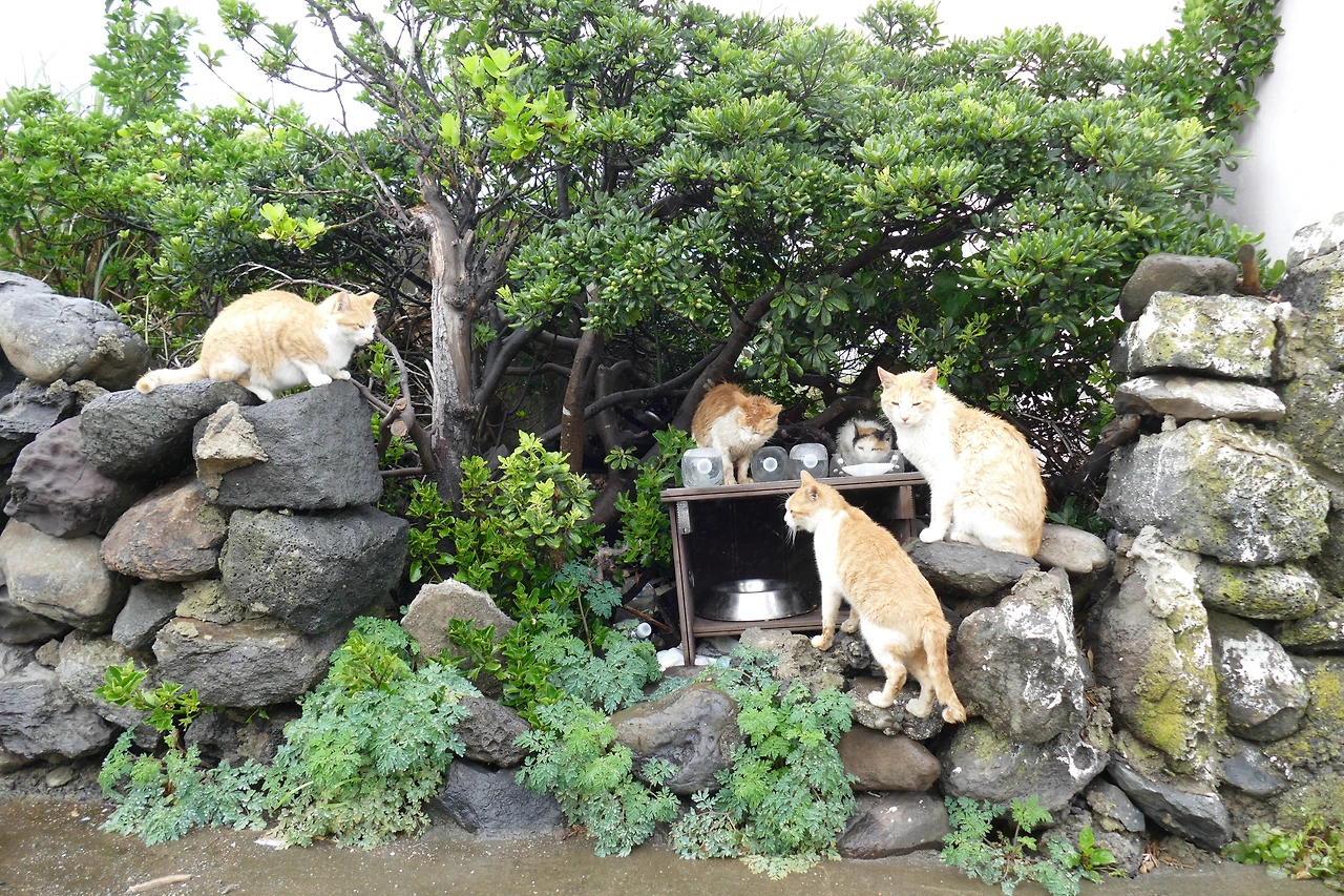 섬 산책길을 따라 걷다 보면, 고양이 식당 주변에 옹기종기 모여 사는 고양이들이 슬며시 모습을 드러낸다. 담벼락 너머, 풀숲 사이, 나무 아래에서 조심스레 고개를 빼꼼 내밀고는 반짝이는 눈으로 낯선 이를 바라본다.