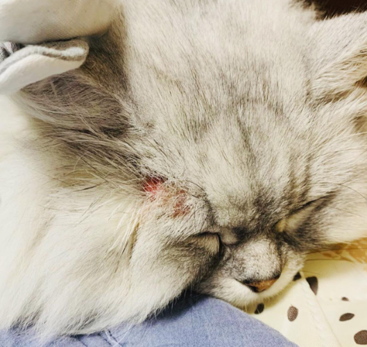 그날, 임시보호처에서도 작은 기적 같은 소식이 도착했다. 조천이의 피부병이 완치되었다는 소식과 함께, 보호자의 반려묘인 복실이 품에 안겨 평화롭게 잠든 사진 한 장이 도착한 것이다.
