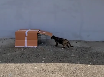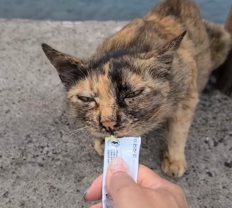 “방파제에 사는 고양이인데, 통조림으론 안 돼서요. 좋아하는 물고기를 넣었더니 들어갔어요.”