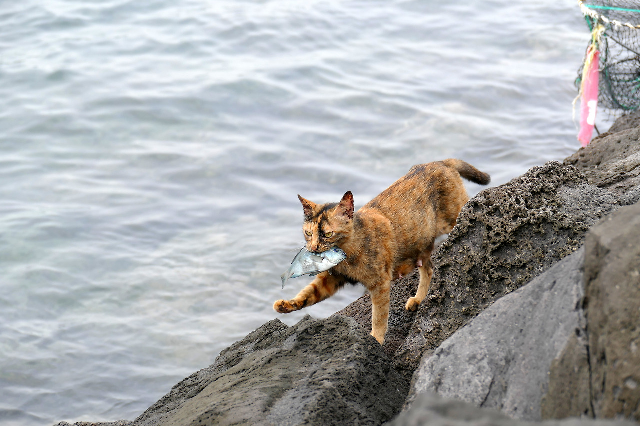 어미는 방파제 끝자락에서 낚시꾼들과도 정이 들었다. 마치 전속 응원단처럼 아저씨들 곁에 꼭 붙어 앉아 있었다. 한 아저씨가 작은 생선을 건네자, 어미는 고개조차 돌리지 않았다. 옆에 있던 아저씨가 웃으며 말했다.