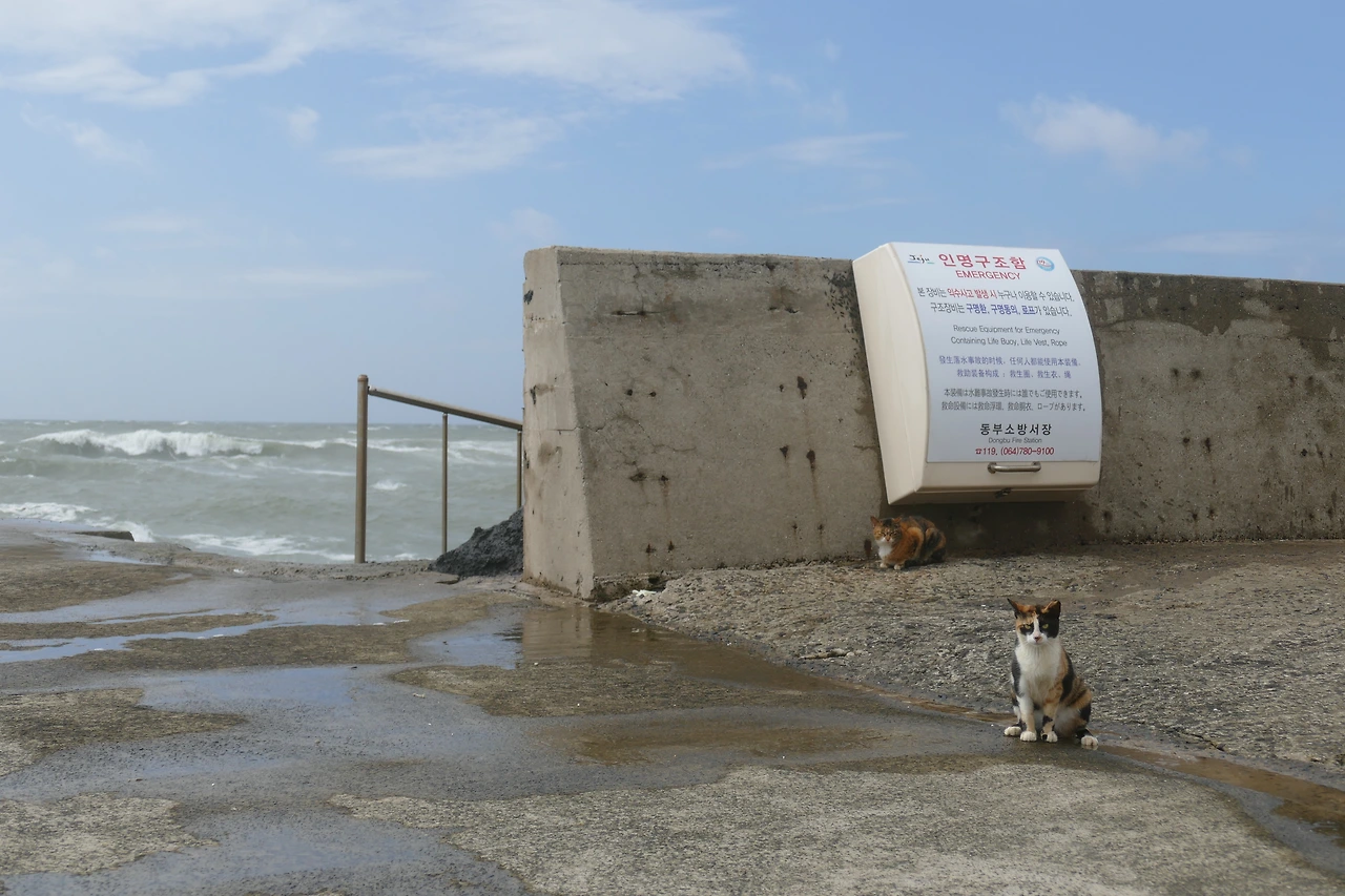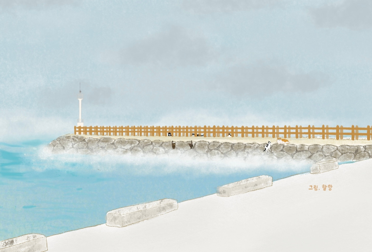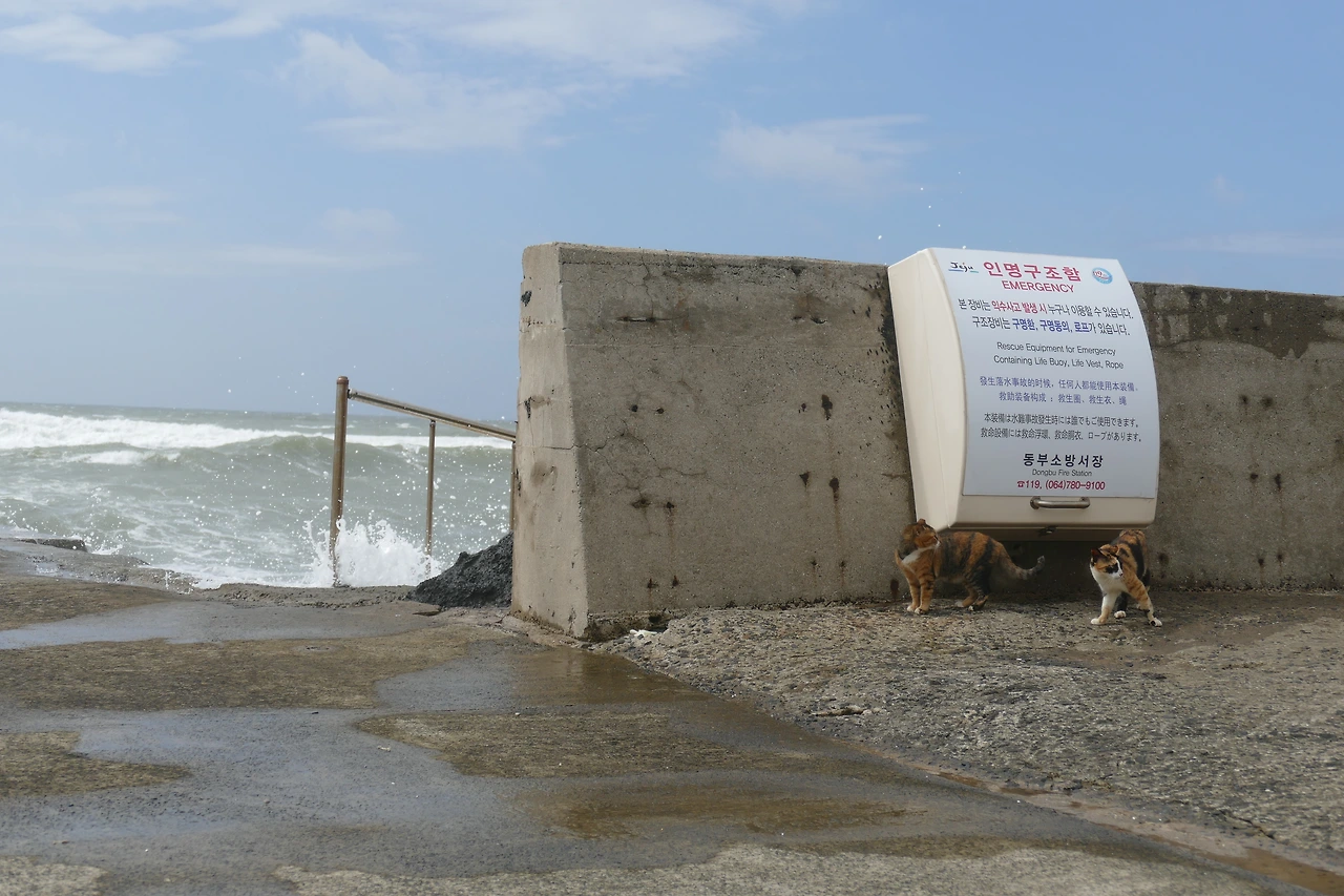전기가 끊긴 도로를 따라 흔들리는 전선, 흩어진 나뭇가지들. 나는 그런 풍경을 지나 다시 방파제로 향했다. 고양이들이 마지막으로 사라진 자리. 아직은, 다시 만날 수 있을지도 모른다는 마음으로.