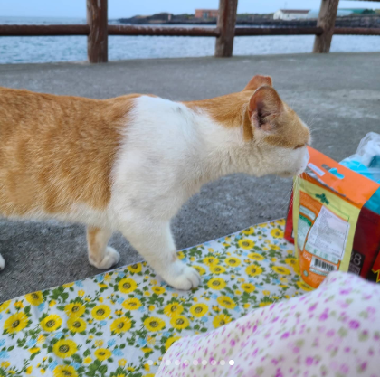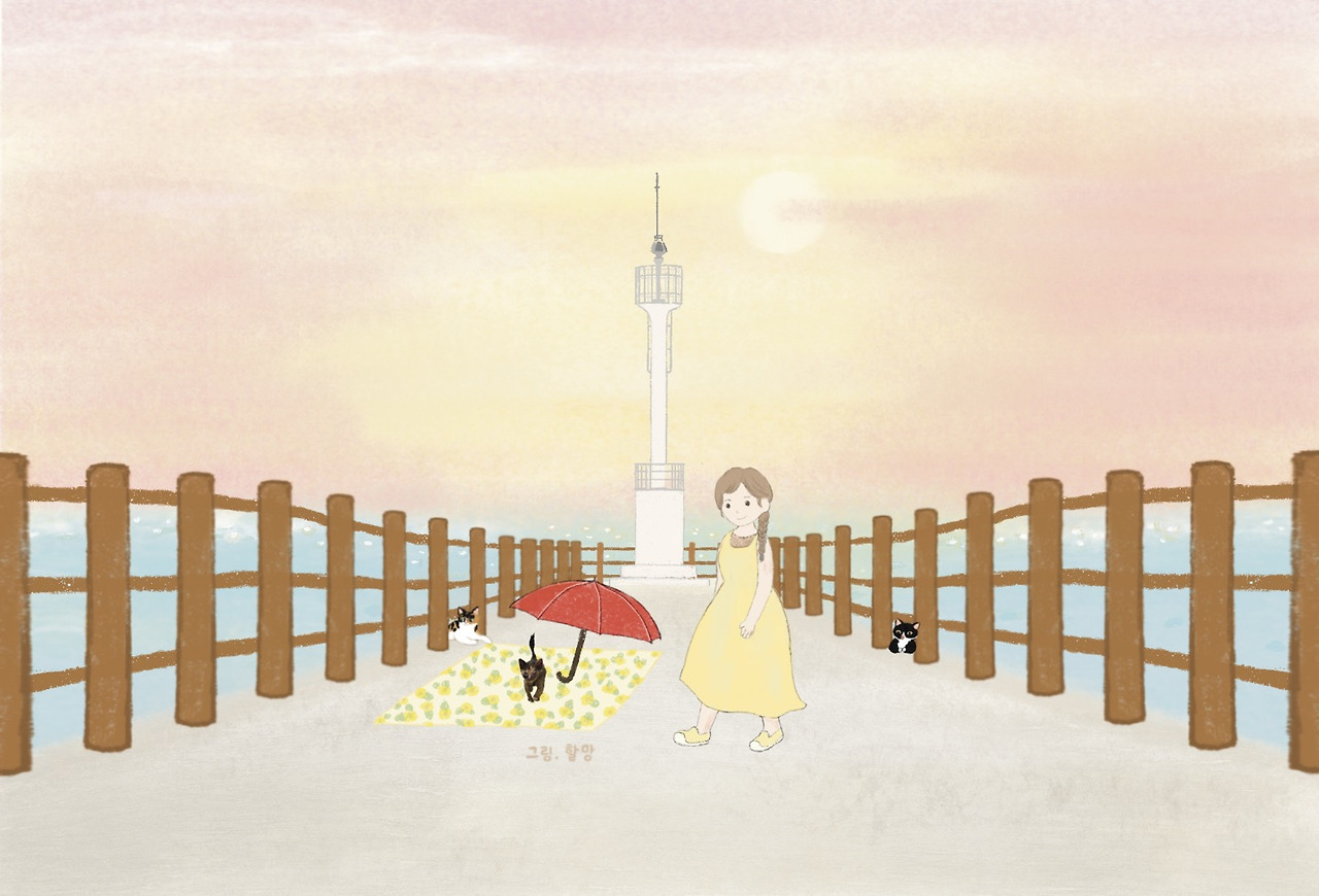 해 질 녘, 다시 방파제를 찾았다. 태풍이 지나고 맑게 갠 하늘, 일몰을 보려는 사람들로 방파제에 인파가 몰릴 것이 염려되었다. 막내 아기도 찾아야 했고, 어두워진 뒤 아기 고양이를 유인해 습식을 먹이고 안약을 넣기엔 두 손만으론 감당하기 어려웠다. 나는 지난 방파제 고양이들 중성화 수술 때 함께해 준 희재 씨에게 조심스레 도움을 청했고, 그녀는 흔쾌히 함께해 주었다.