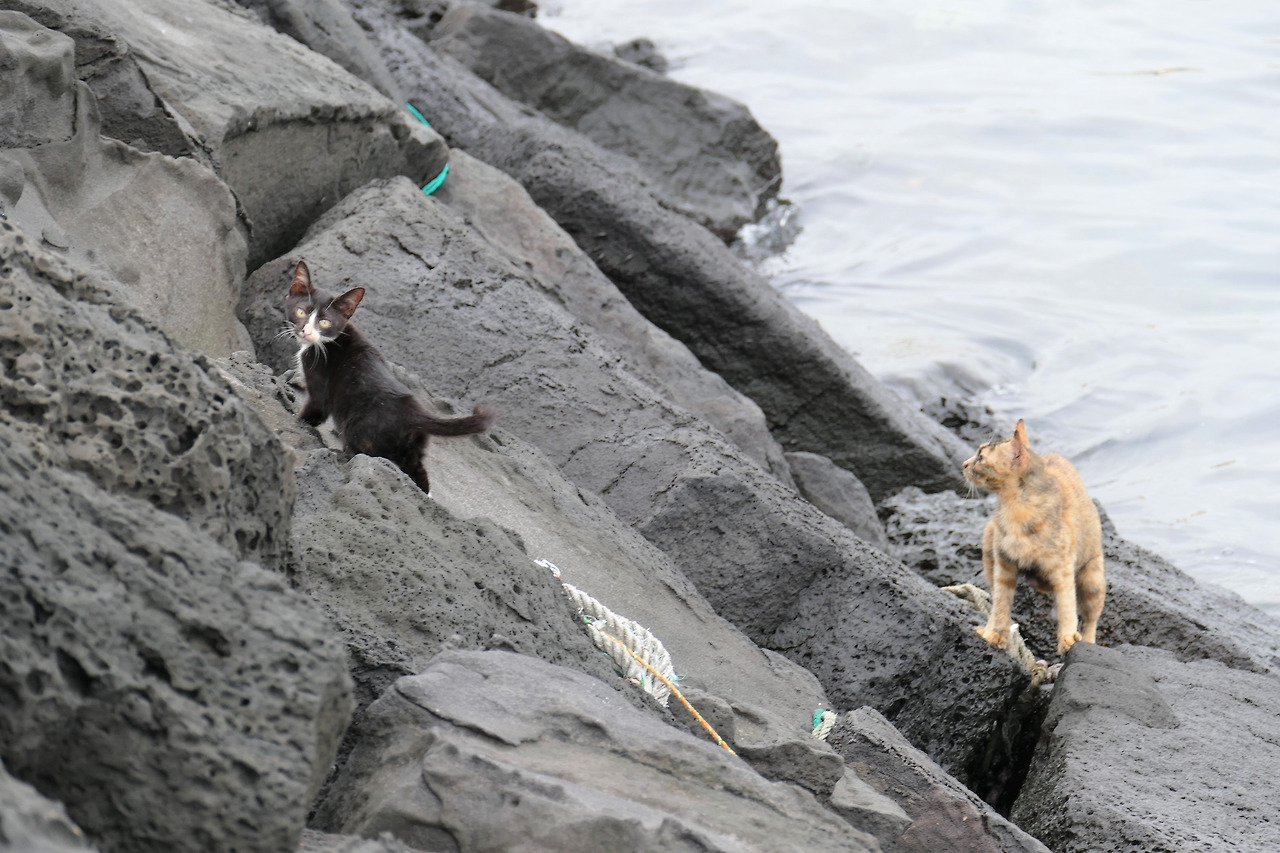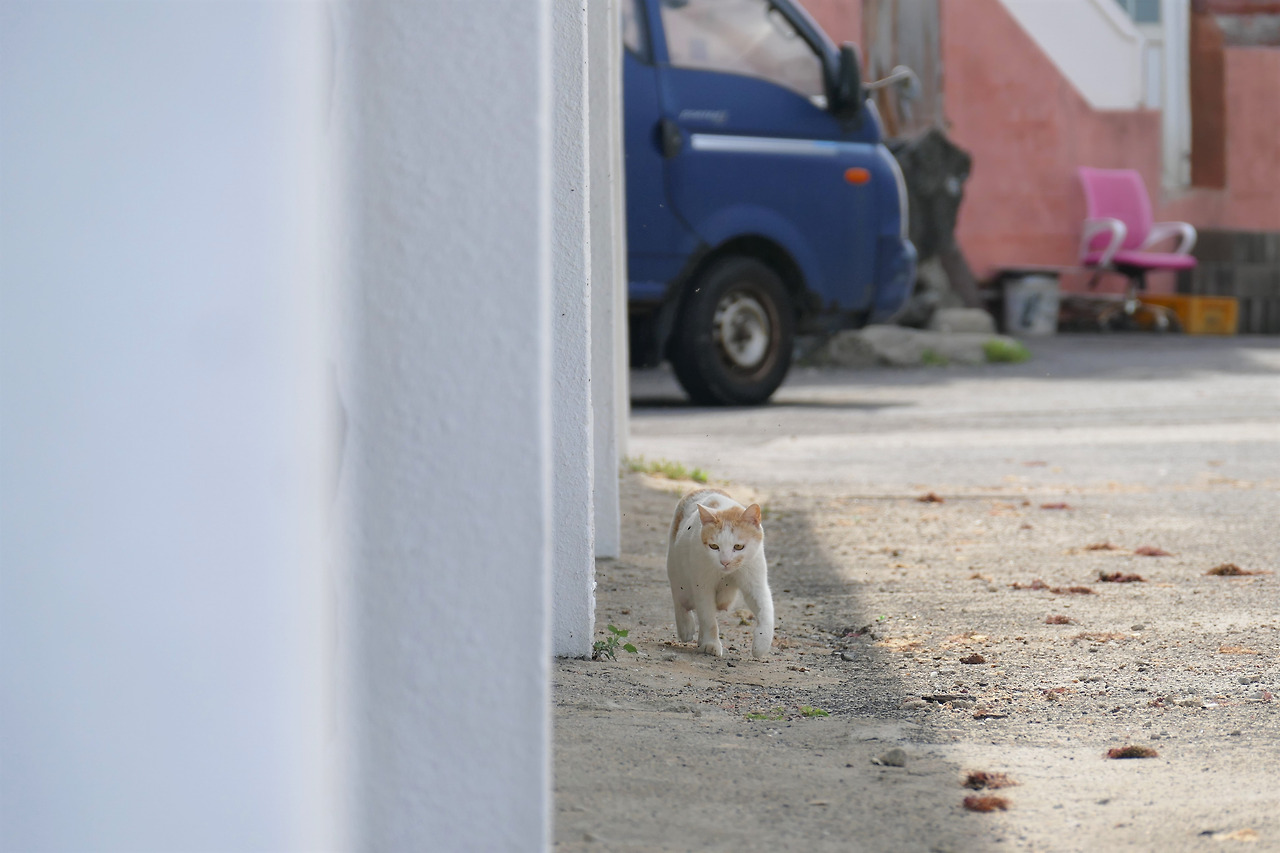 일주일의 여정도 어느덧 마지막 날. 트렁크에 가득 담아 왔던 간식은 이미 바닥났고, 래오 엄마에게 양해를 구해 곤히 잠든 래오 몰래 사료와 닭가슴살을 챙겼다. 래오네 집에서 방파제까지는 차로 10분 남짓. 비가 갓 그친 아침, 방파제는 숨을 죽인 듯 고요했고, 고양이의 그림자조차 보이지 않았다. 하지만 햇살이 골목의 물기를 말려가자, 어디선가 하나둘 나타날 것 같은 예감이 들었다.
