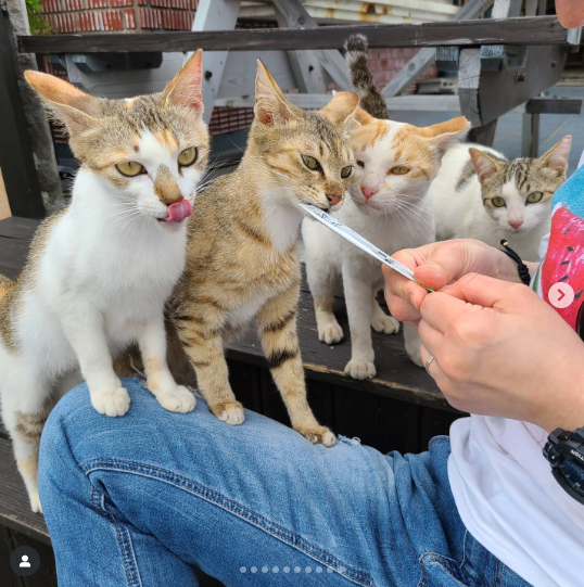 간식을 받아먹는 솜씨도 제법 능숙해져, 어떤 아이는 무릎 위에 앞발을 올린 채 맛을 보기도 했다. 그 풍경은 마치 오랜 시간을 함께한 가족처럼 정겨웠다.