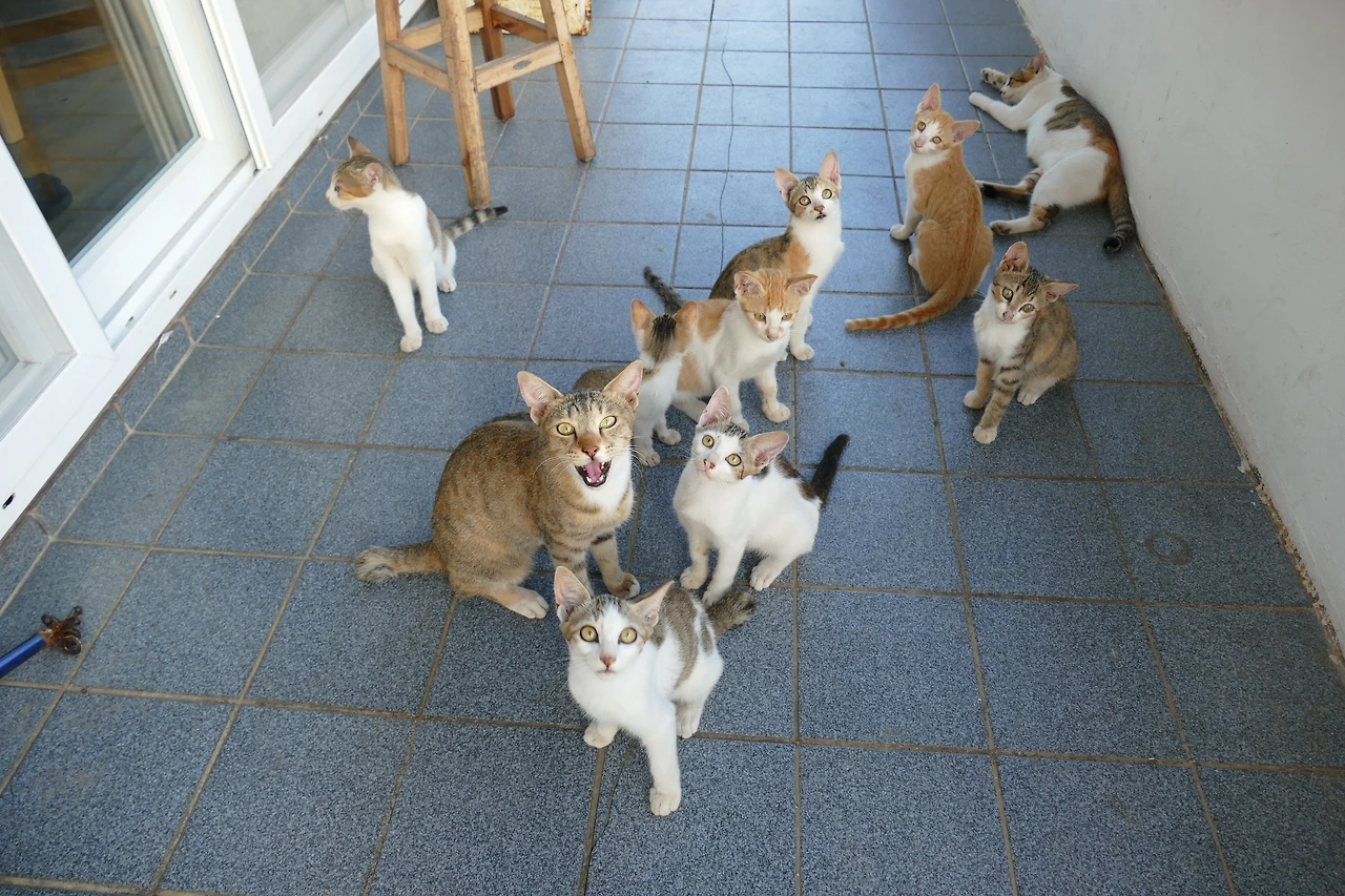 계단을 따라 정문으로 들어서면, 거실을 가로지른 베란다가 길게 펼쳐진다. 유리창 너머로 보이는 그 공간은 고양이들의 놀이터이자, 낮잠을 즐기는 온실이다. 아이들은 낮은 턱 위에 느긋이 누워 햇살을 만끽하고, 맞은편 지붕으로 가볍게 몸을 날리기도 했다. 그러다 가끔은 담장 너머로 세상을 내려다보곤 했다. 멀리서 바람이 불어오고, 눈을 가늘게 뜬 채 바다 내음을 삼키는 듯한 표정으로.