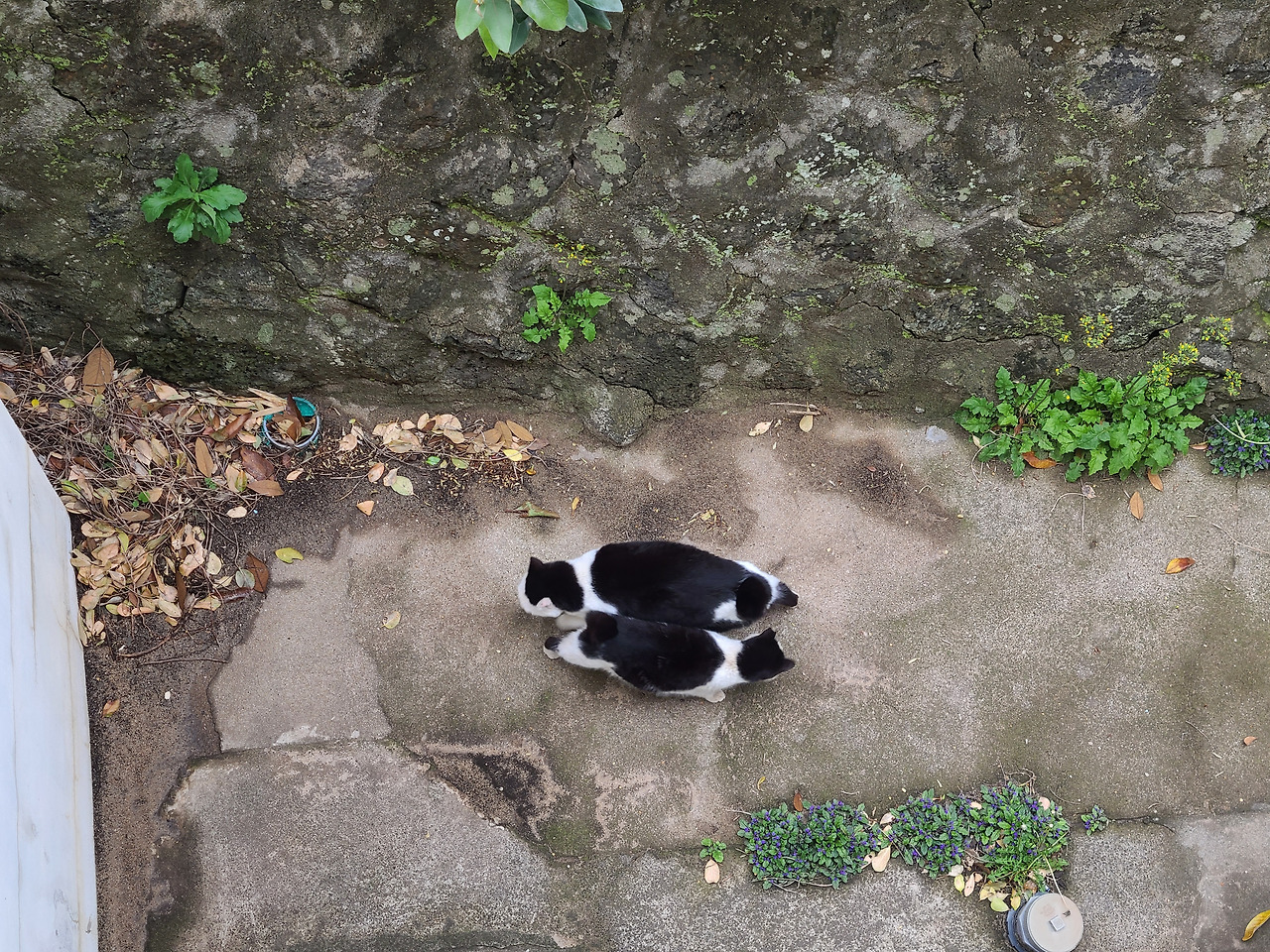 낯익은 목소리에 고개를 든 마델이가 천천히 몸을 일으켰다. 돌담 위로 점프해 올라온 그는, 마치 기다렸다는 듯 그 자리에 자리를 잡고 앉았다. 곧 친구 고양이 둘이 뒤따랐고, 건물 뒤편에 숨어 있던 고양이들까지 하나둘 모습을 드러냈다.