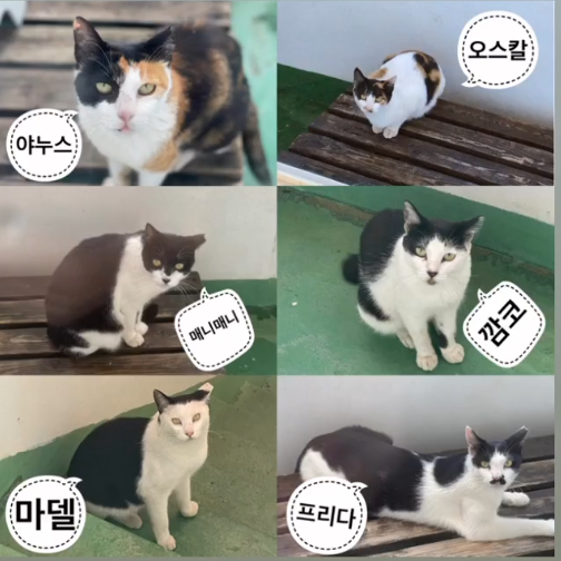 다쳐서 온 고양이들은 약을 먹이며 회복을 도왔고, 그렇게 쌓인 시간이 어느덧 5년. 지금은 열 마리가 넘는 고양이들이 이곳을 오간다. 사장님은 이제 동네 고양이들의 든든한 지원군, 베테랑 집사가 되셨다. 이름을 지어준 고양이만 해도 야누스, 오스칼, 매니매니, 깜코, 마델, 프리다, 꼬마, 땡글, 애기, 코난, 알록이, 바니, 짱이, 랑이, 보리, 돌담, 밭담, 리태, 한결, 구월이, 코점… 어느새 20마리를 훌쩍 넘는다.