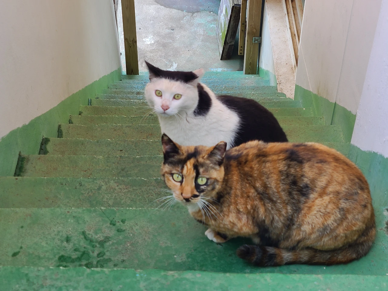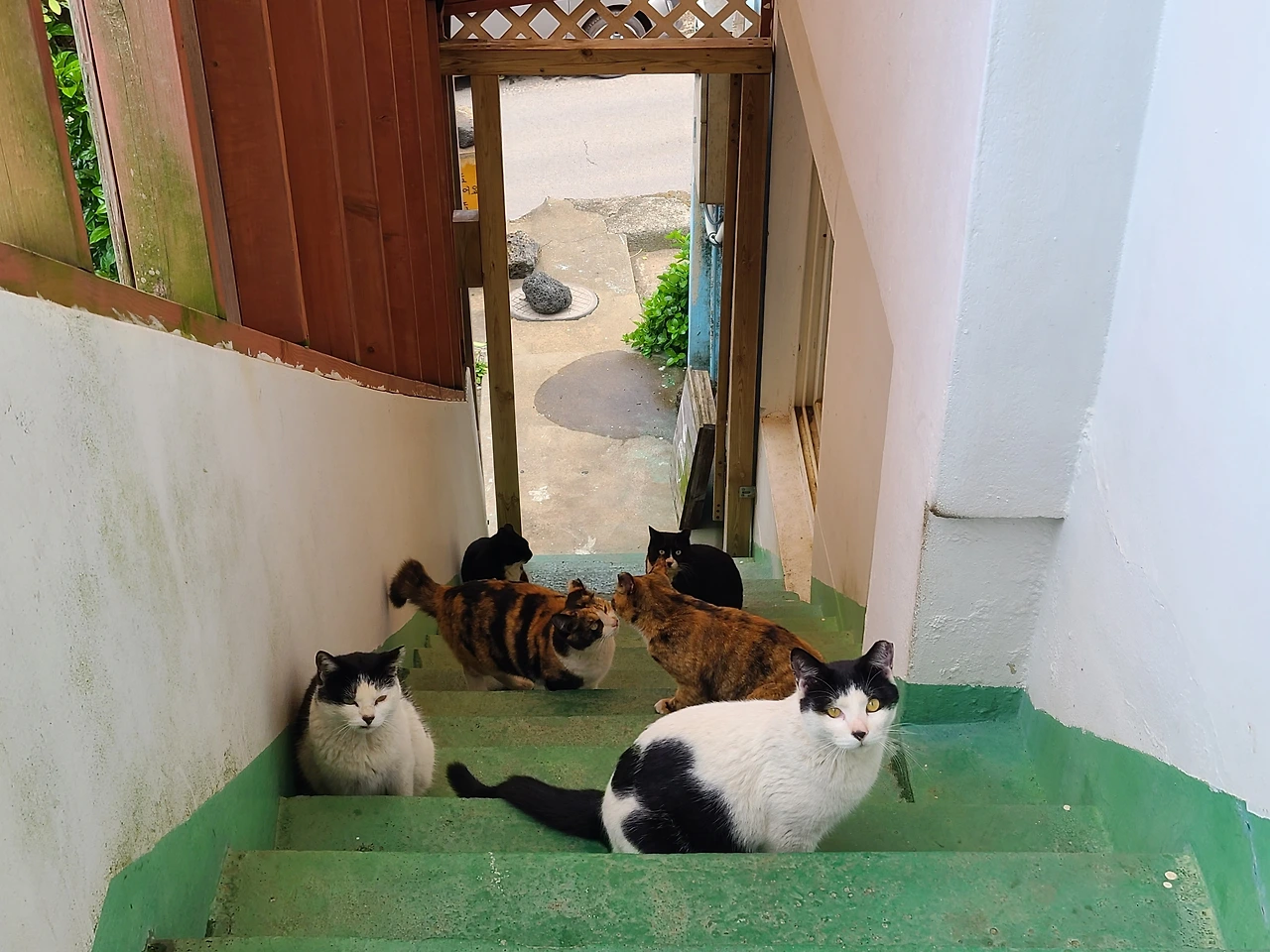 계단 아래쪽에서도 또 다른 움직임이 일었다. 맛있는 냄새나는 누나가 올라간 걸 본 고양이들이, 하나둘씩 계단을 향해 조심스레 몸을 움직였다.