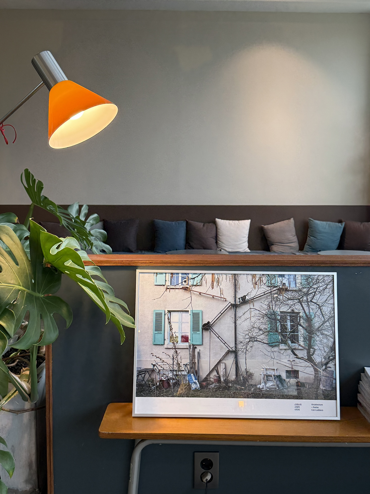 이곳과 가까운 건축가가 운영하는 카페에서도 그 책을 마주한 적이 있었다. 그런데 이곳에서는 액자 속 사진으로 다시 만나니 더욱 반가웠다. 액자 속 풍경은 단순한 장식이 아니었다. 고양이 가족과 함께 살아가며 쌓아온 주인의 마음이, 사다리의 길 위로 겹쳐 스며들었다.