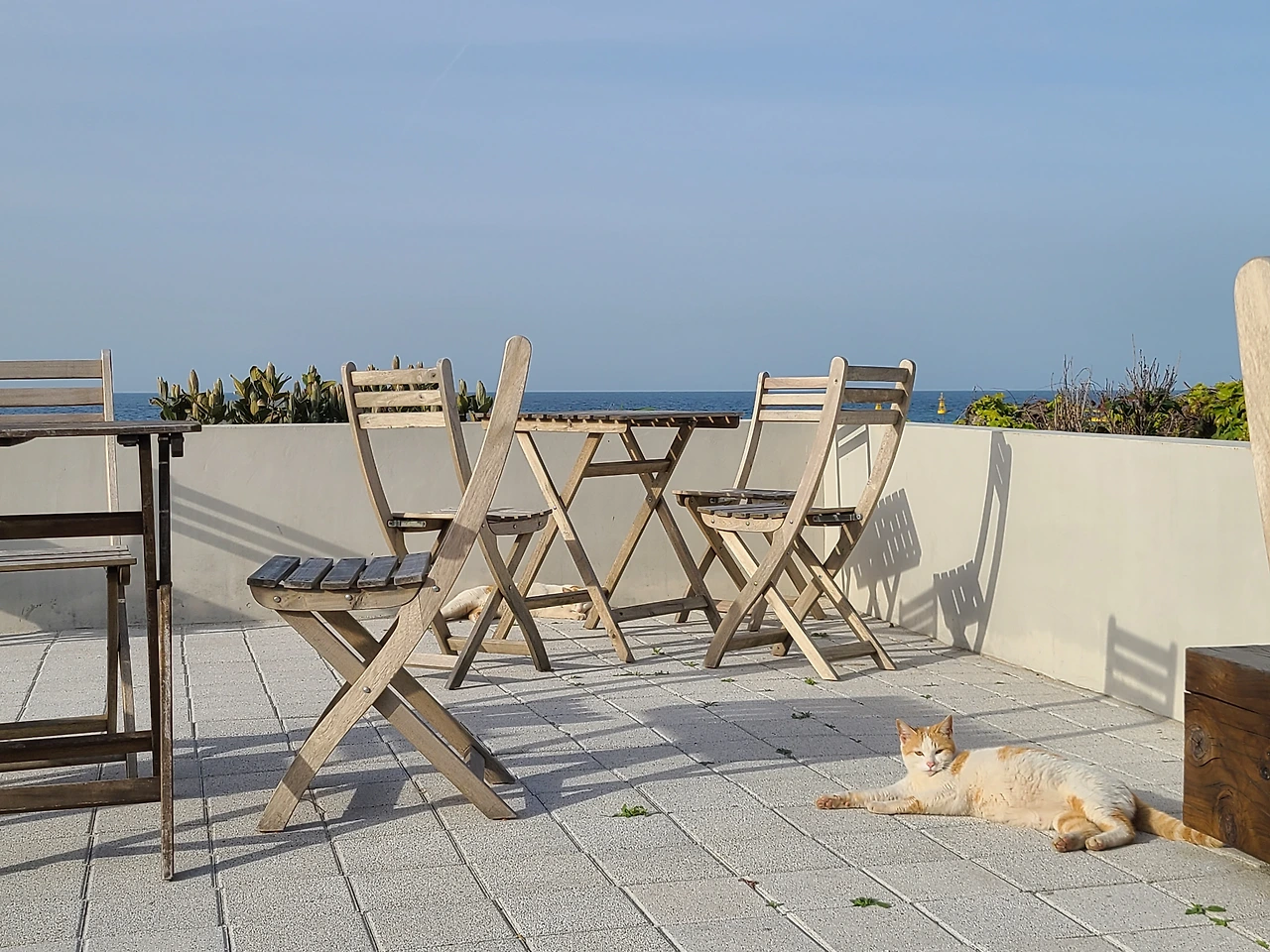 삼색이가 머무는 폐기물 적하장과는 달리, 이곳은 파라다이스에 가까웠다. 바다를 배경 삼아 고양이들이 늘어지게 잠든 풍경을 바라보는 것만으로도 마음이 풀어졌다.