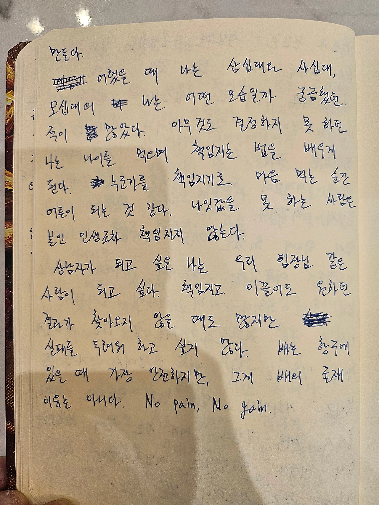 어렸을 때 나는 삼십 대와 사십 대, 오십 대의 내가 어떤 모습일까 궁금했던 적이 있었다. 아무것도 결정하지 못하던 나는 나이를 먹으며 책임지는 법을 배우게 된다. 누군가를 책임지기로 마음먹은 순간 어른이 된다. 나잇값을 못 하는 사람은 본인 인생조차 책임지지 못한다.
