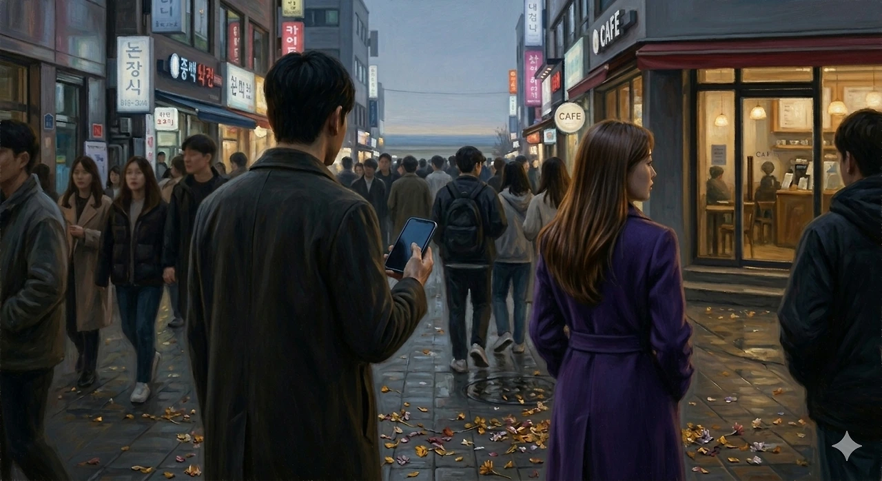 지도는 내 손에 있었지만, 내 눈은 내비게이션이 아니라 그녀의 눈동자 속에 담긴 나의 확신만을 찾고 있었다. 그래서 우리는 그날, 카페가 아니라 '우리'라는 목적지를 지나쳐버린 것이다.