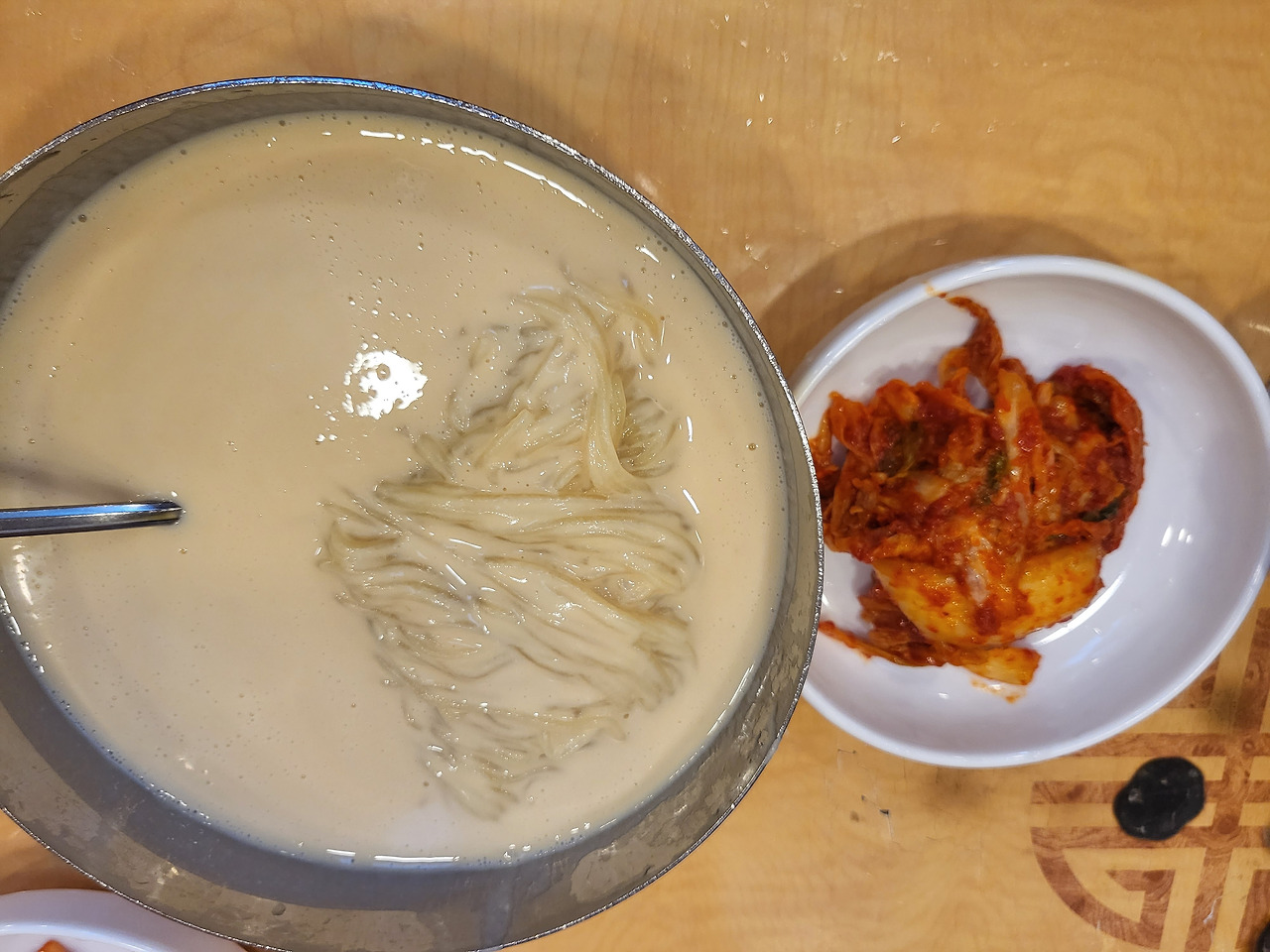 관람이 끝나고 시청역 9번 출구로 갔다. 콩국수 맛집이 있는 곳이다. 1시가 넘었는데도 대기 줄이 길게 늘어서 있었다. 홀은 생각한 것보다 더 넓었고 차례는 빠르게 돌아왔다. 자리에 앉으니 척척 주문을 받고 계산을 하고 금세 음식이 나왔다. 소문난 맛집에 오면 입소문만 과한 것이 아닌가 설마 하는 마음을 가지게 되는데 제발 기본맛만 해라 생각한다. 그렇게 기대 없이 맞이해서인지 허기가 져서 인지 생각보다 걸쭉하고 진한 국물, 고소하며 맛있는 콩국수에 감탄사를 내뱉였다. 쫄깃하고 적당히 두꺼운 면발, 그리고 무엇보다 1인 1 김치가 마음에 들었다. 달달한 겉절이에 고소한 콩국수 한 그릇을 다 비우고 나니 배가 두둑했다.