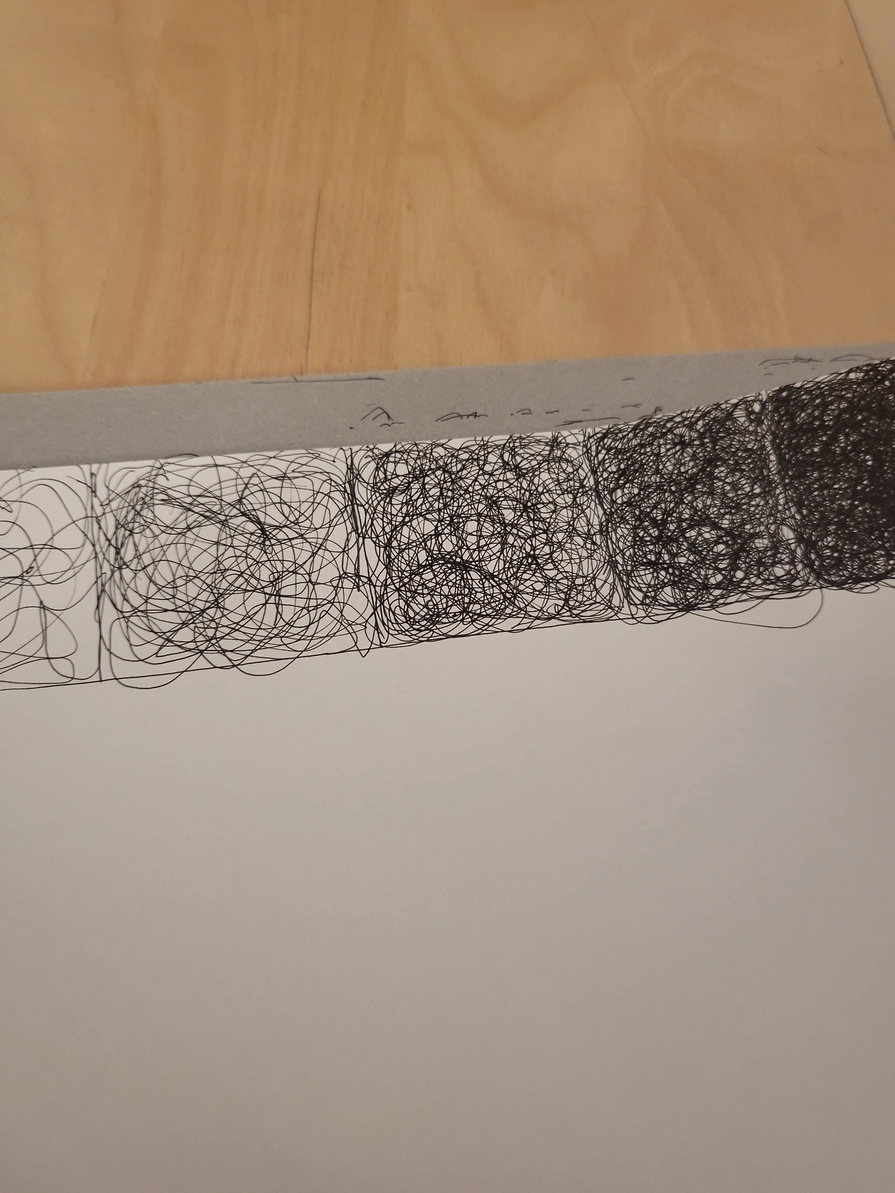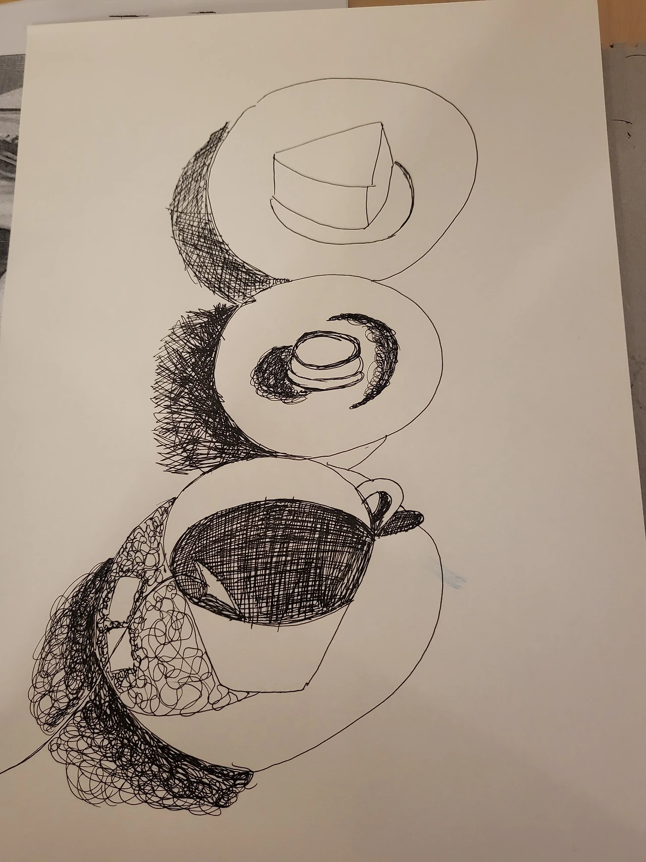 세 번째 종이에 그리는 그림은 자신감이 생겼다. 접시마다 다른 명암을 다른 패턴으로 표현해 보는 것이 흥미로웠다.