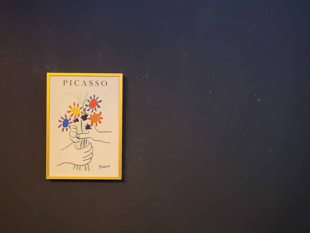 진회색 벽면은 그런대로 그림액자와 잘 어울린다. 분리된 공간에 고즈넉이 홀로 앉으니 편안하다.
