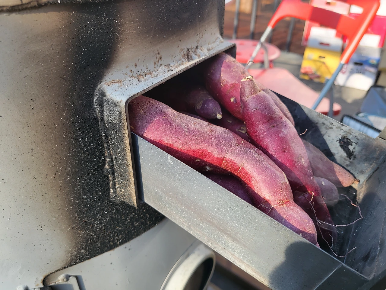 , 인심 좋은 주인장, 고구마가 구워지길 기다리며