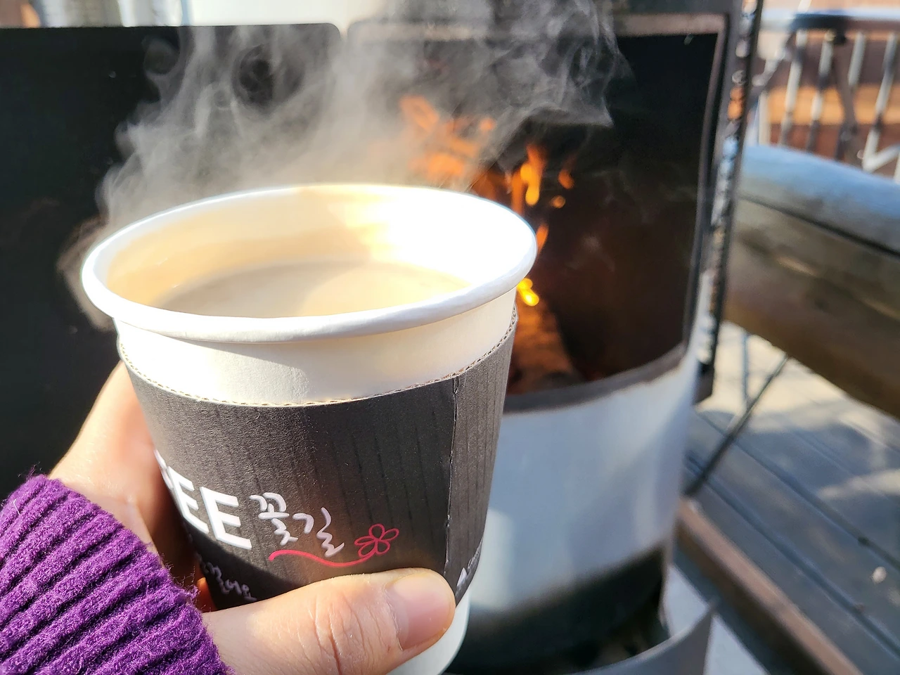 차가운 바람에 뜨거운 커피가 춤을 춘다