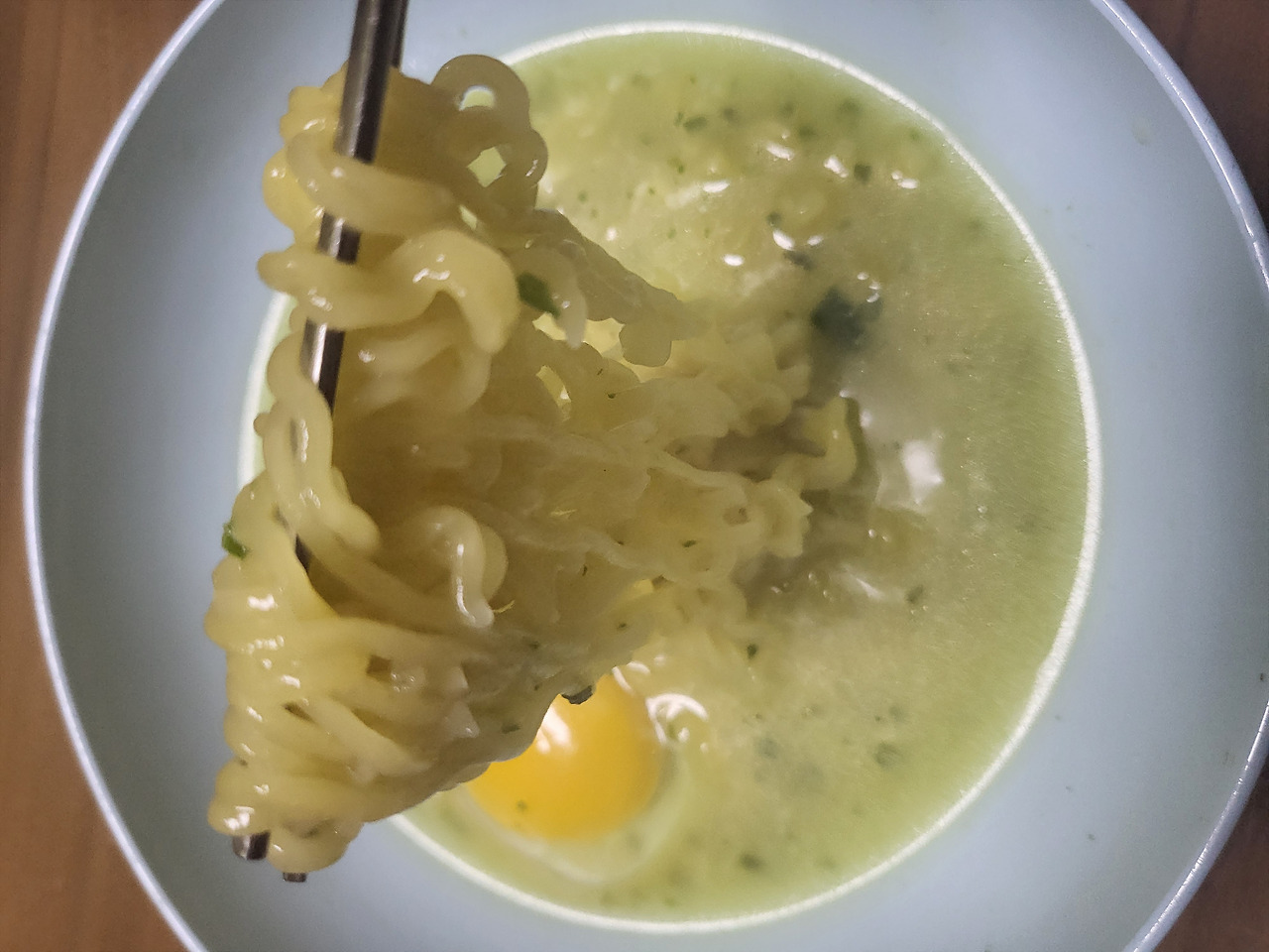 나는 그냥 봉지에 담긴 그대로 끓인 라면이 제일 맛있다. 거기에 계란 한 개를 풀어 넣고, 파를 송송 썰어 넣으면 최고로 맛있다.