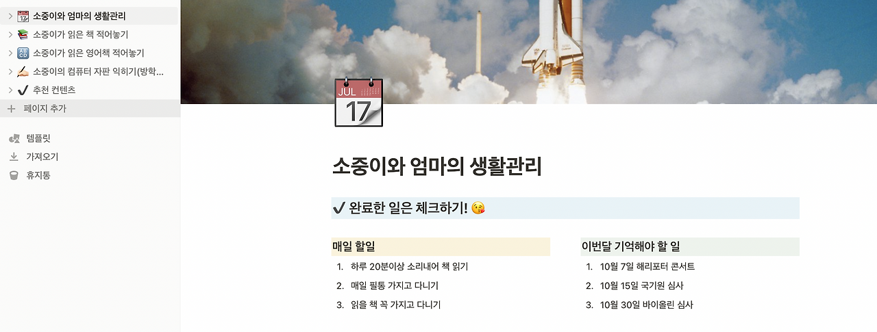 그러니까 아이와 함께 노션으로 생활을 관리해보세요.