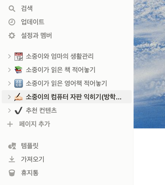 그래서 초등 2학년도 노션을 사용하는 것이지요.