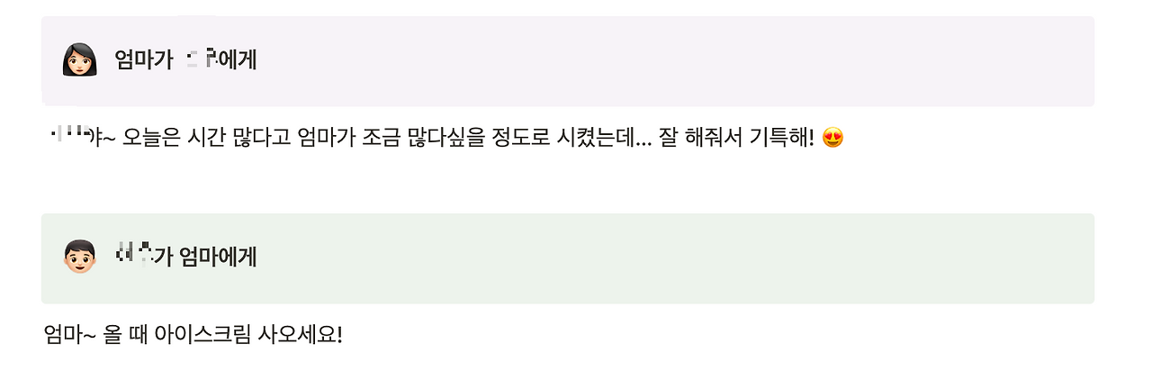이렇게 실시간으로 노션을 통해 아이와 대화하다 보니 아이와 더 가까워지는 느낌이 들더라고요.
