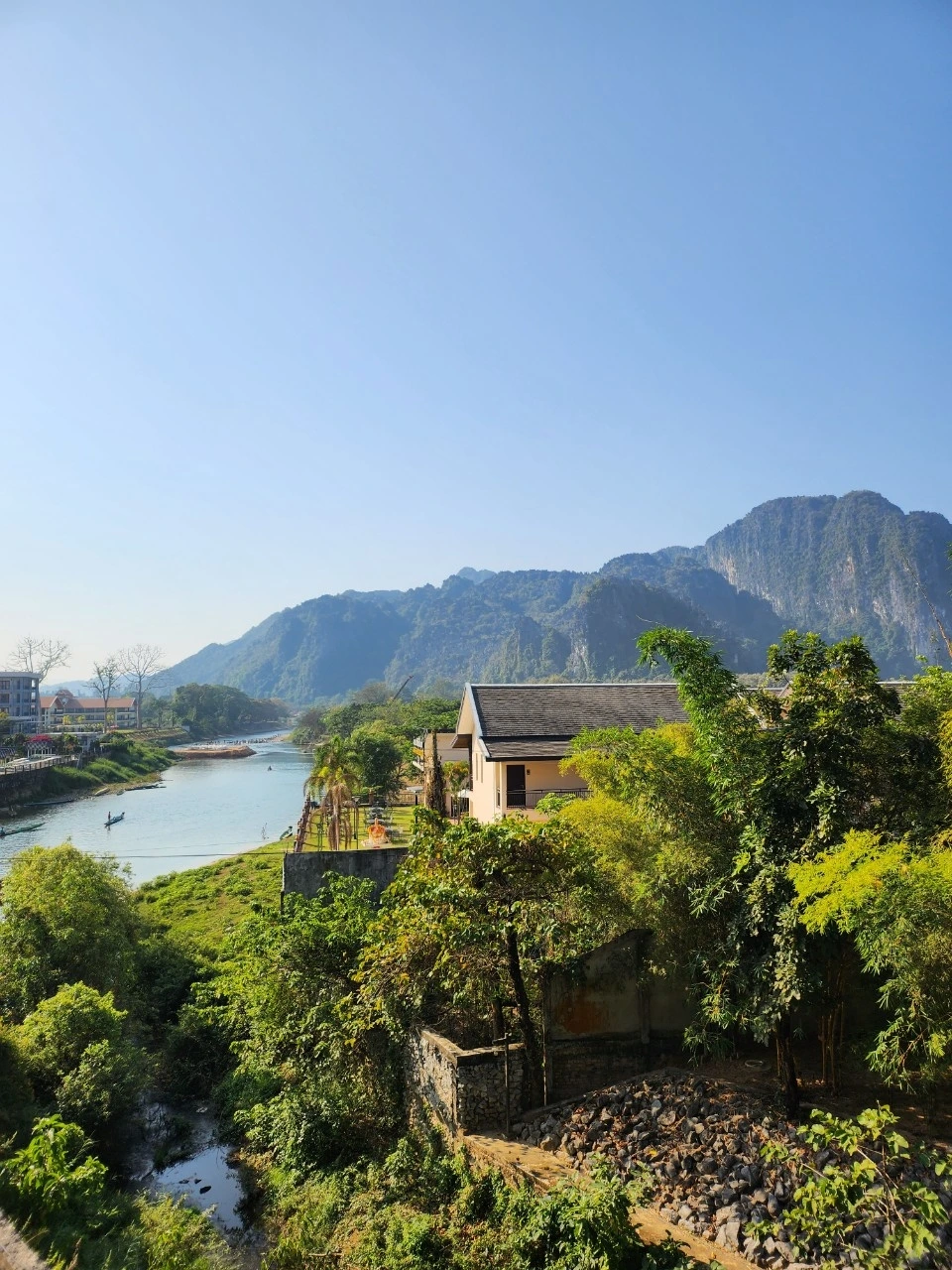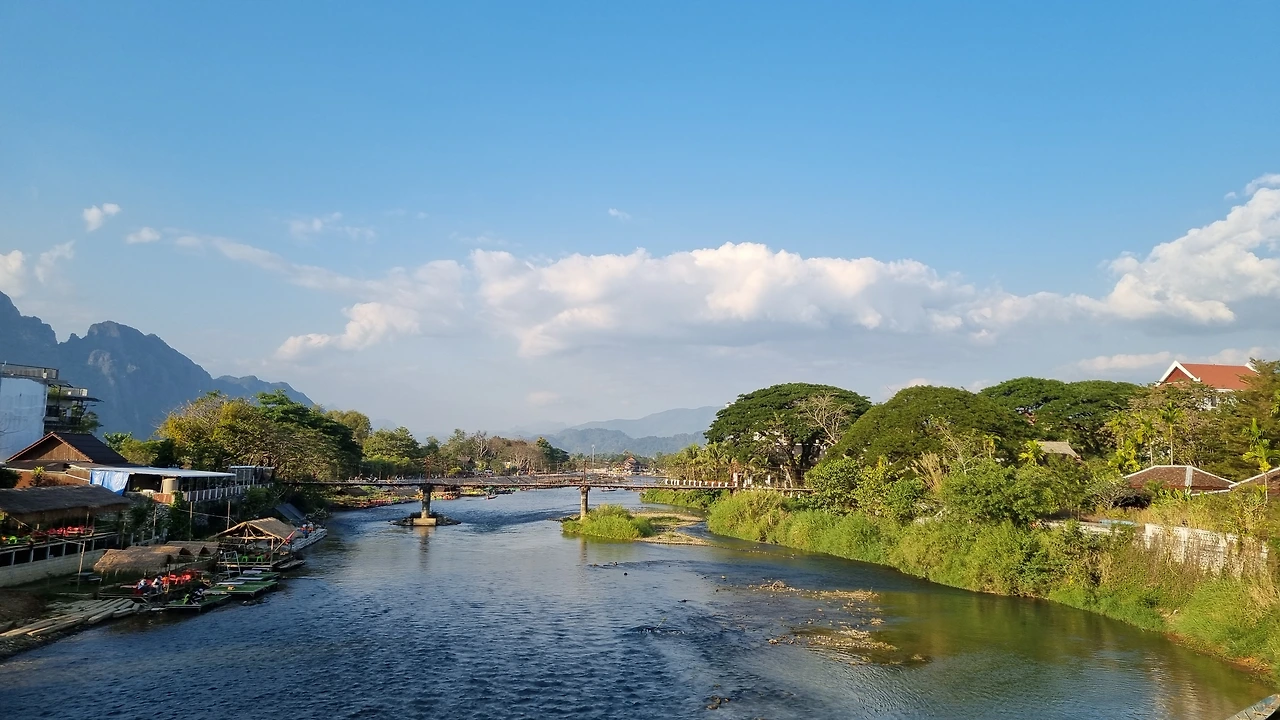 이 강을 따라 라오스 사람들은 카약을 띄워 여행자들을 위해 노를 저어 돈을 번다. 풀을 뜯던 소도 이 강에서 목을 축인다.