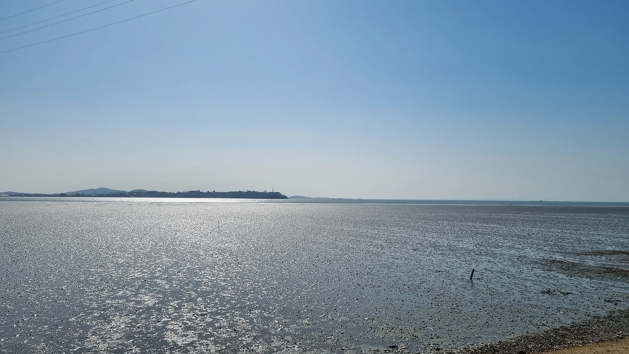 바닷물이 빠진 자리 너른 갯벌이 반짝인다.