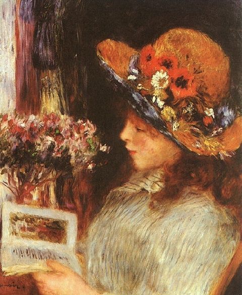 가을느낌이 물씬 풍기는 그림입니다. 가을은 독서의 계절이라는 고전적인 문구가 떠오릅니다. 창으로 은은한 가을빛이 들어오는 오후쯤이 아닐까 싶습니다. 편안한 의자에 등을 기대고 좋아하는 책을 손에 들고 여유로운 시간을 보내고 있습니다. 책에 몰두하는 여인의 모습은 어느 때이든 아름답습니다. 모자를 쓰고 있는 것을 보니 밖에서 막 들어왔나 봅니다. 휴~하며 평소에 즐겨 앉던 의자에 앉아서 평소에 즐겨보던 책을, 아니면 보다가 둔 채 바깥풍경에 이끌어 잠사 나갔다 돌아와서는 다시 책을 손에 든 것일 수도 있겠지요. 여인의 표정이 그렇게 평화로울 수 없습니다. 책은 아마도 마음을 평안으로 이끄는 내용일 듯합니다. 그렇게 평화로운 가을 오후의 한때가 우리들 삶 안에도 그대로 있지 않나요! 화가는 우리에게 그 한때의 기억으로 충분히 행복하다고 말하고 있는 듯합니다.