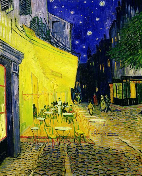 이번 주에 그린 두 번째 그림은 바깥에서 바라본 어떤 카페의 정경이다. 푸른 밤, 카페 테라스의 커다란 가스등이 불을 밝히고 있다. 그 옆으로 별이 반짝이는 파란 하늘이 보인다. <중략> 밤 풍경이나 밤이 주는 느낌, 혹은 밤 그 자체를 그 자리에서 그리는 일이 아주 흥미롭다.