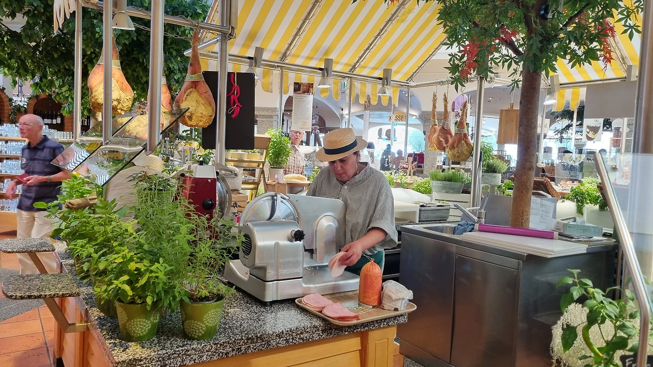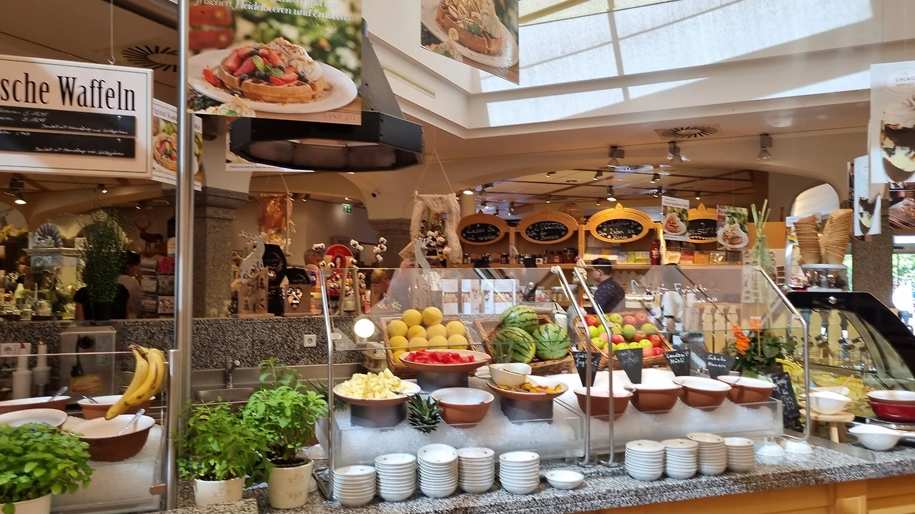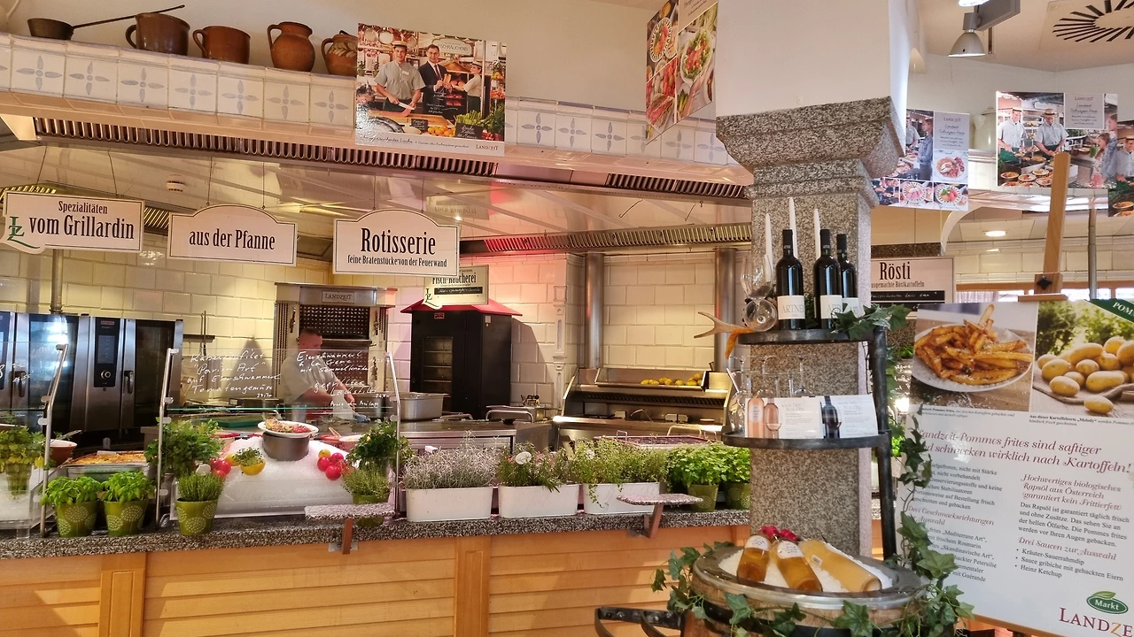 비엔나에서 잘츠부르크로 넘어가는 길에 들른 식당과 카페, 소품가게가 있는 어느 마켓입니다.