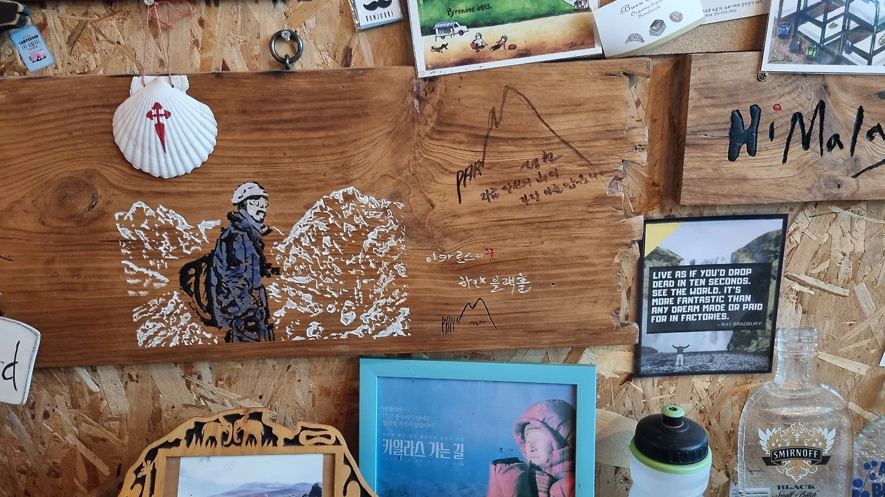 외관은 다소 허름해 보이지만, 현관문을 열자마자 '여행에 진심이 사람이 운영하는 게스트하우스'라는 느낌이 물씬 풍겼다. 길, 여행, 산티아고, 걷기, 지리산, 책, 고양이...... 정돈되지 않은, 하지만 어떤 질서에 의해 배치된, 갑자기 들이닥친 여행객에도 아무렇지도 않은 듯 여유로운 주인장. 자유로움, 그리고 주인장의 여행 철학과 취향이 가득한 공간이 마음에 들었다.