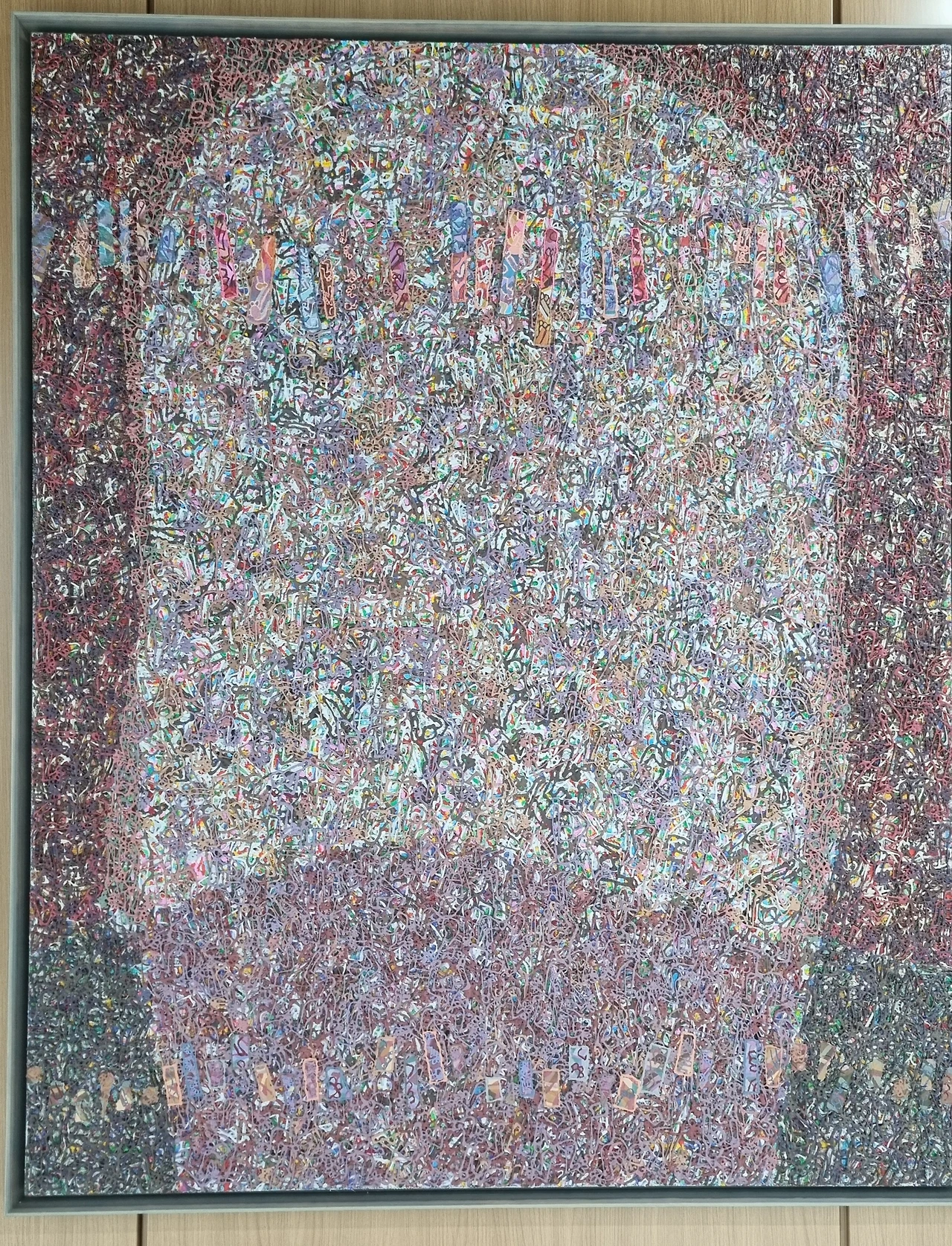 그림을 멀리서 전체적으로 조망하다가 '뭐지?' 궁금해하며 가까이 다가가 형제를 살펴봅니다. 사람의 형상이 얽히고설킨 모습입니다. '아, 사람이었구나!' 그리고 그림 왼쪽에 붙어있는 작가와 그림의 제목에 대한 설명을 읽어봅니다. 제목이 '관계'입니다. '아, 그래서 사람의 형상을 이토록 복잡하게 얽히고설키게 표현했구나!' '그런데 위아래에 직사각형 모양을 가로로 길게 배열한 것은 무엇을 의미하지?' '색조를 명도와 채도를 달리하여 보랏빛으로 통일감과 연결감을 준 것은 편안함과 안정감을 주는 것 같아 느낌이 좋아.' '게다가 아랫부분에 보랏빛과 대조되는 청록색을 배치하여 단조롭지 않고 그림에 생동감을 주는 것 같은데.' '그런데 전체적인 형상이 도대체 무엇을 말하고 있는 걸까?' 추상그림을 보고 있으면 의문만 가득해집니다. 도대체 작가의 의도에 10분의 1도 닿을 수 없을 것 같은 모호함이 답답하기도 합니다. 정답을 요구하는 문화에 길들여져서 그럴까요? 아무튼 결론은 '모르겠어. 그래도 이 그림 마음에 든다. 집이 넓으면 한 벽면에 걸어둬도 좋겠는걸.' 하고 돌아섭니다.