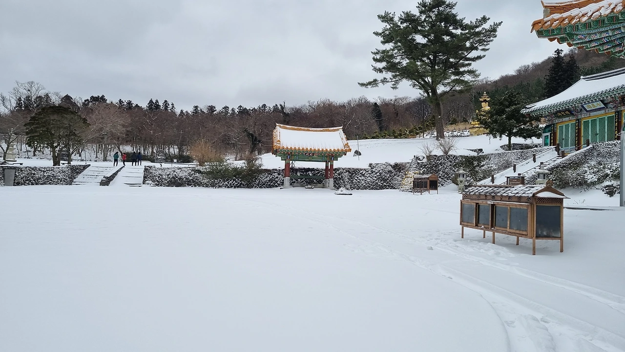 스님의 따듯한 말씀을 들으며, 온 세상을 하얗게 새롭게 하는 눈 같은 부모님의 사랑을 떠올렸습니다. 눈이 가득가득 내려서 포근포근한 제주 관음사에서 이 겨울의 경이로운 아름다움에 감사했고 새로운 힘도 얻었습니다.