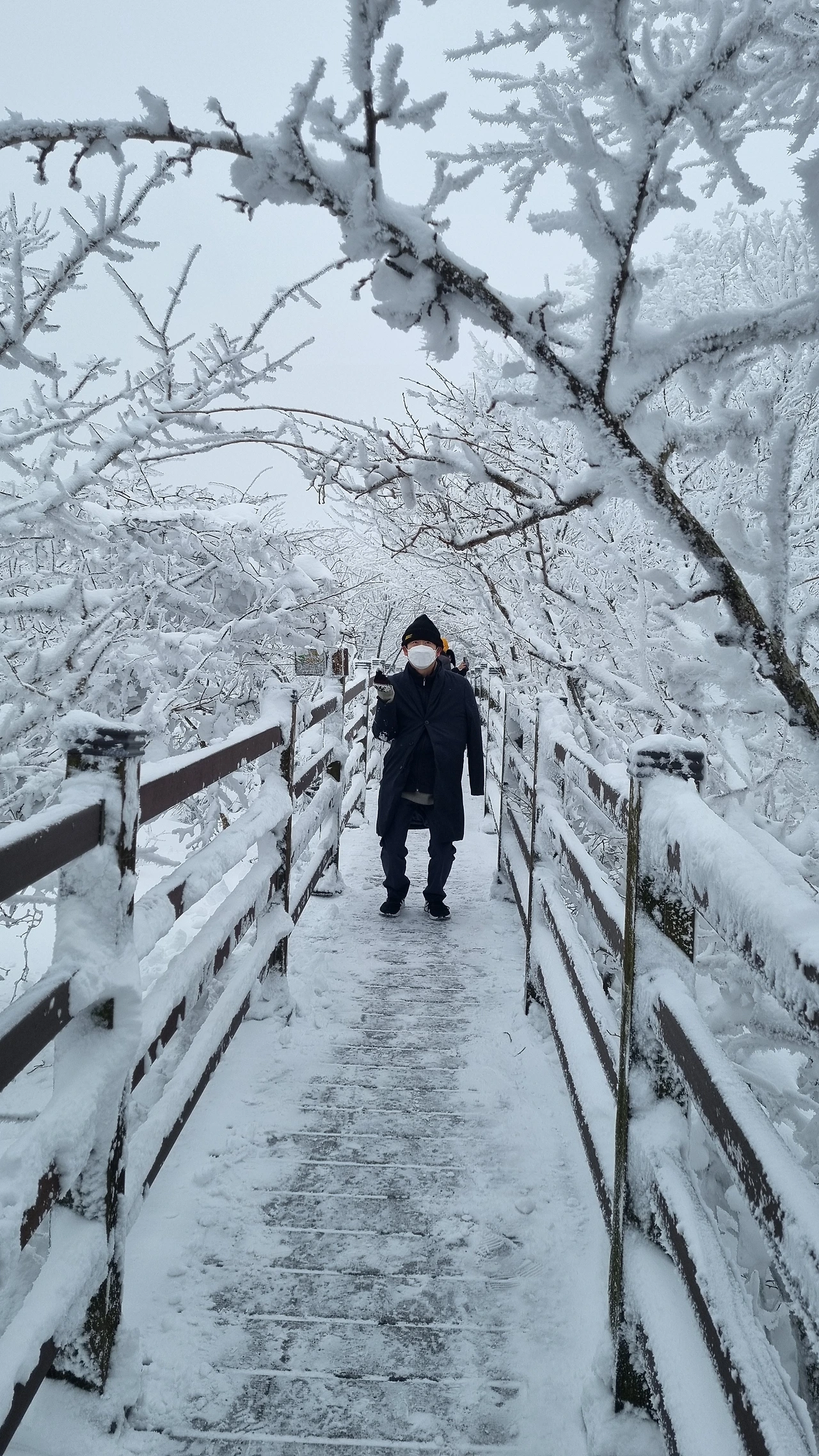 나는 소중한 사람들 얼굴을 나도 모르게 떠올리고, 그들과 함께 이토록 아름다운 풍경을 함께 하지 못함에 아쉬워합니다. 딸, 아들, 언니들, 동생네, 자연의 아름다움을 정말로 사랑하는 나의 시누이. 그들과 함께였다면 이 경이로운 아름다움은 살아가는 내내 되뇌며 이야기꽃을 피울 '우리들의 소중한 2024년 1월 26일 한라산의 최고 설경에 대한 추억'이 될 텐데요. (25일에는 1100 고지는 통제되어 갈 수 없었답니다.)
