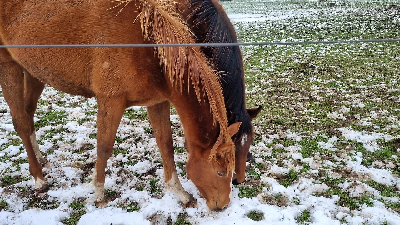 사람들이 목장을 찾는 이유, 그건 당연히 말을 보기 위함입니다. 우리도 하얀 눈이 드문 드문 뒤덮인 목장에서 무리를 지어 풀을 뜯고 있는 말들을 보러 갔습니다.