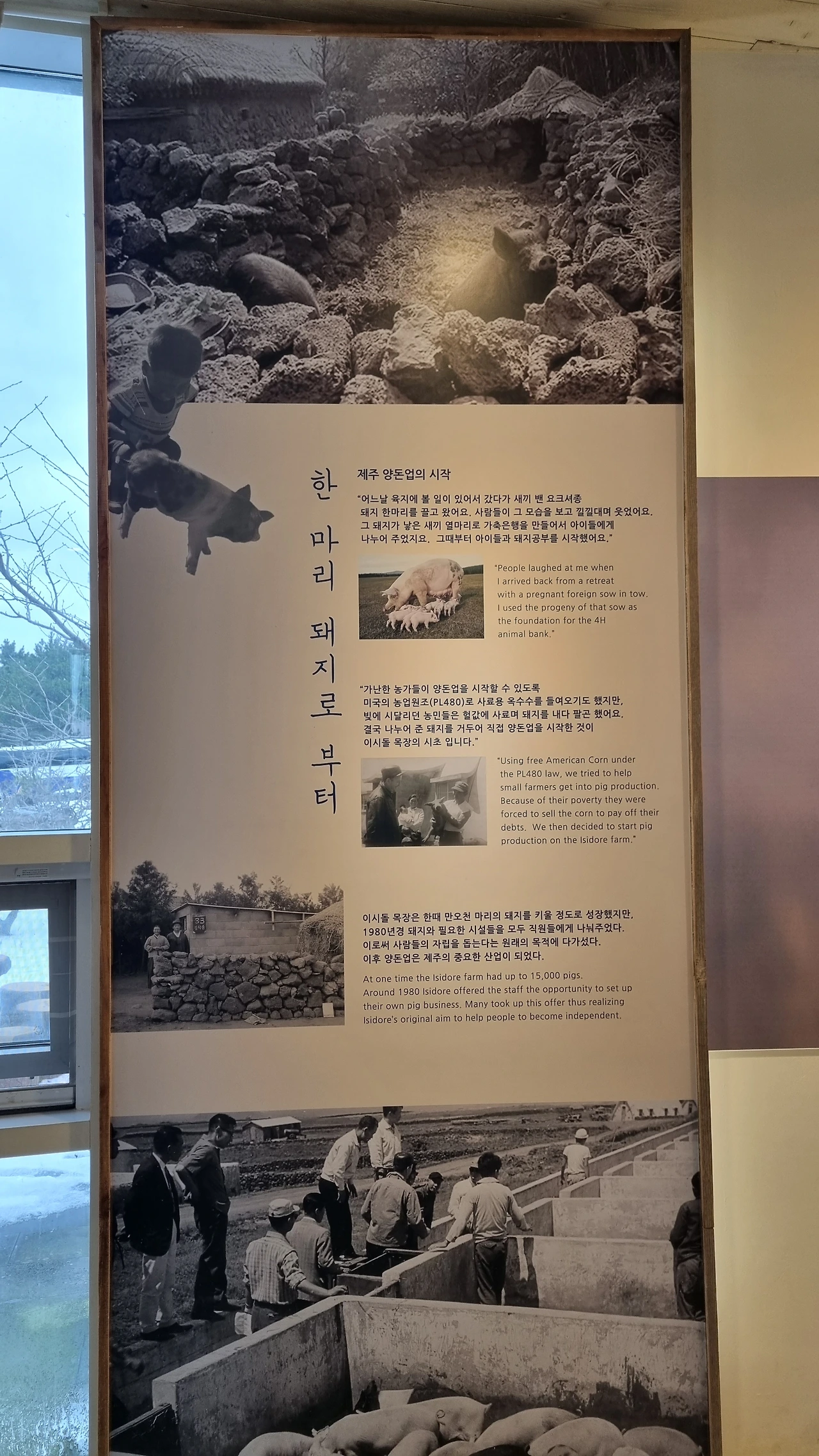 제주에 오면 제주 흑돼지를 맛있게 먹었는데, 그러면서도 우리는 '제주 양돈업'에 이토록 아름다운 한 신부님의 삶이 있었다는 것을 몰랐습니다. 이시돌 목장은 한때 만오천 마리의 돼지를 육성할 만큼 성장했고 1980년경 돼지와 필요한 시설을 모두 직원들에게 나누어주어 제주 주민의 자립을 도왔다고 합니다.