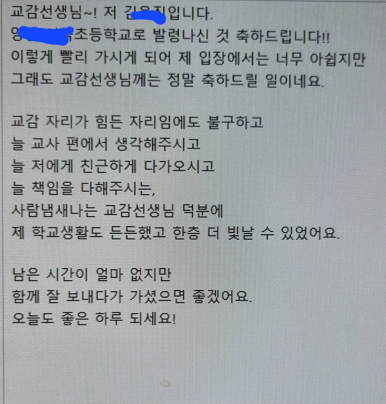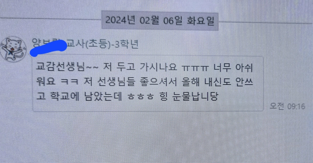 "교감선생님, 몸은 괜찮으세요? 자꾸 아프시면 안 되는데..., 방학 전에도 쉼 쉬기 힘드셨다면서요."